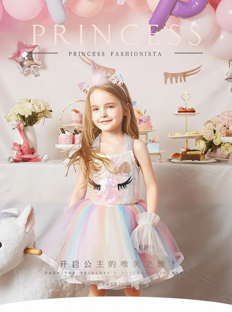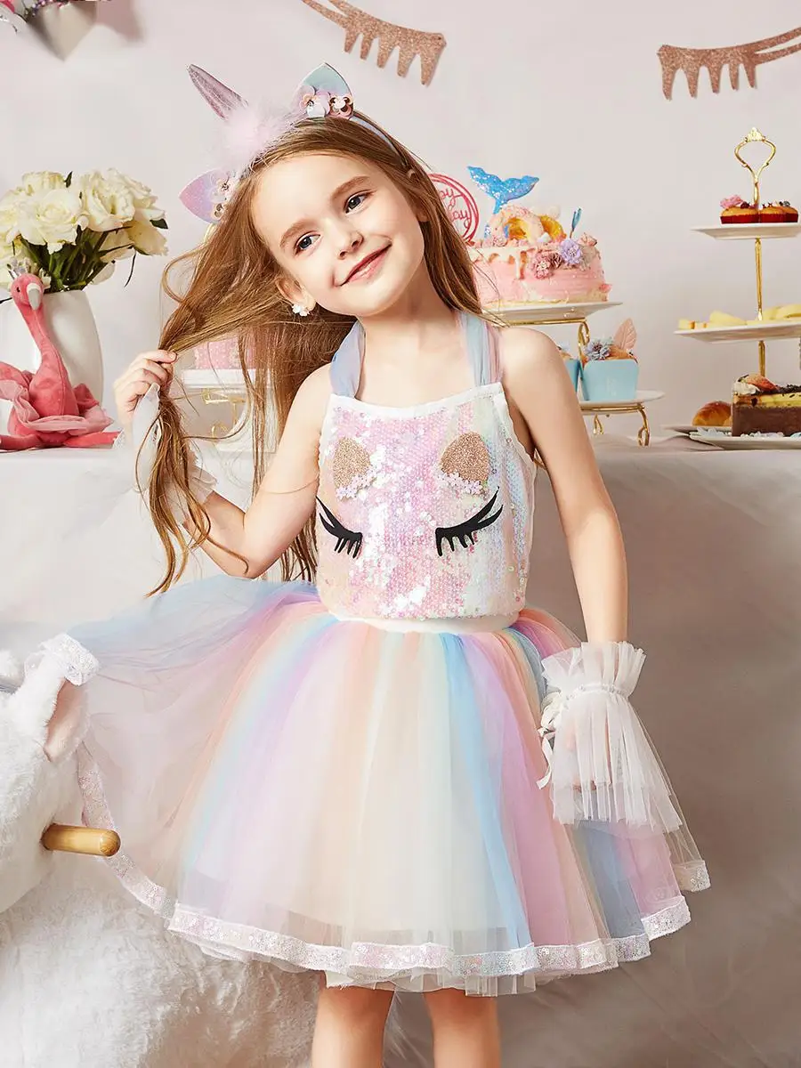 Детский костюм-пачка с единорогом, Радужное праздвечерние платье для девочек, маскарадный костюм единорога для косплея, лето 2021