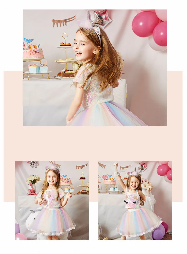 Костюм единорога для девочек, маскарадный костюм, радужная пачка с ...