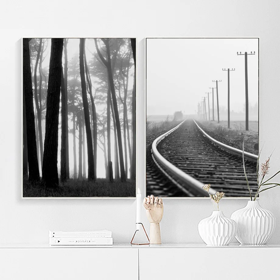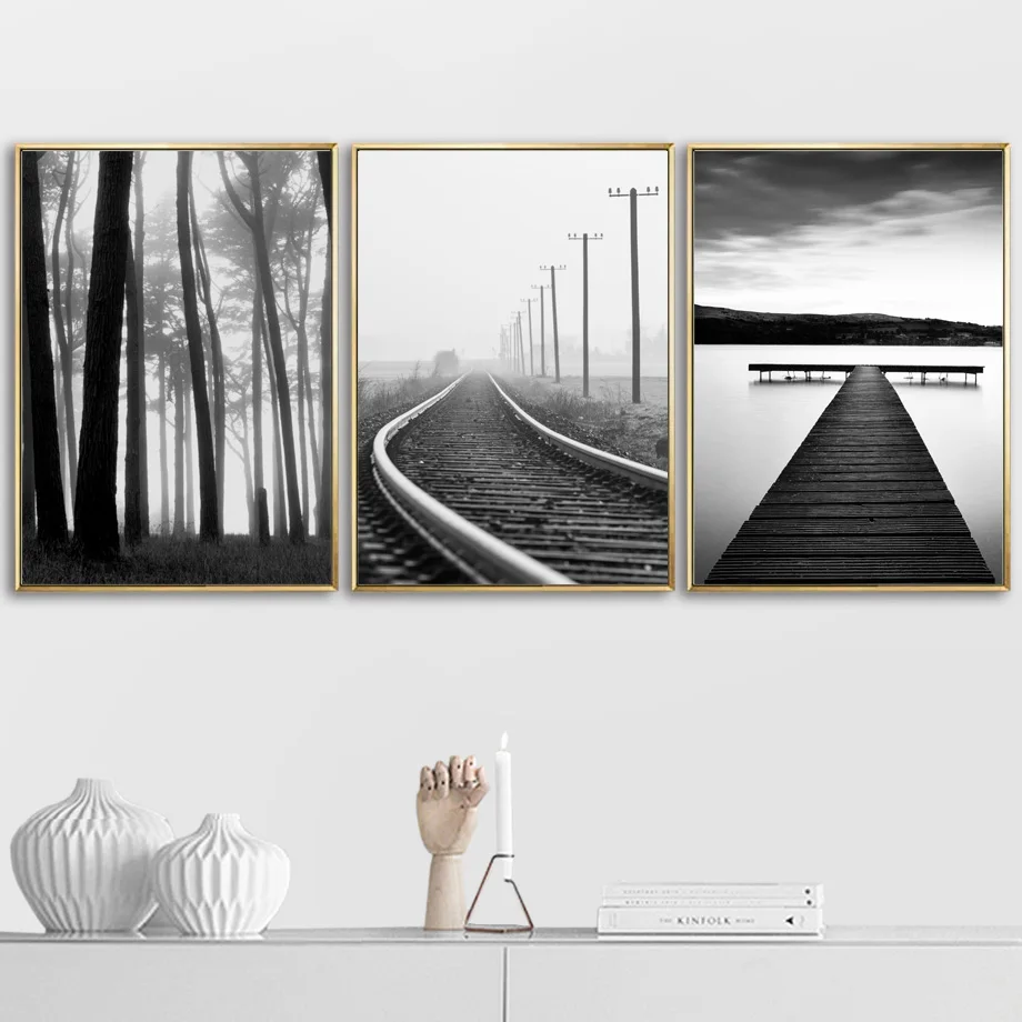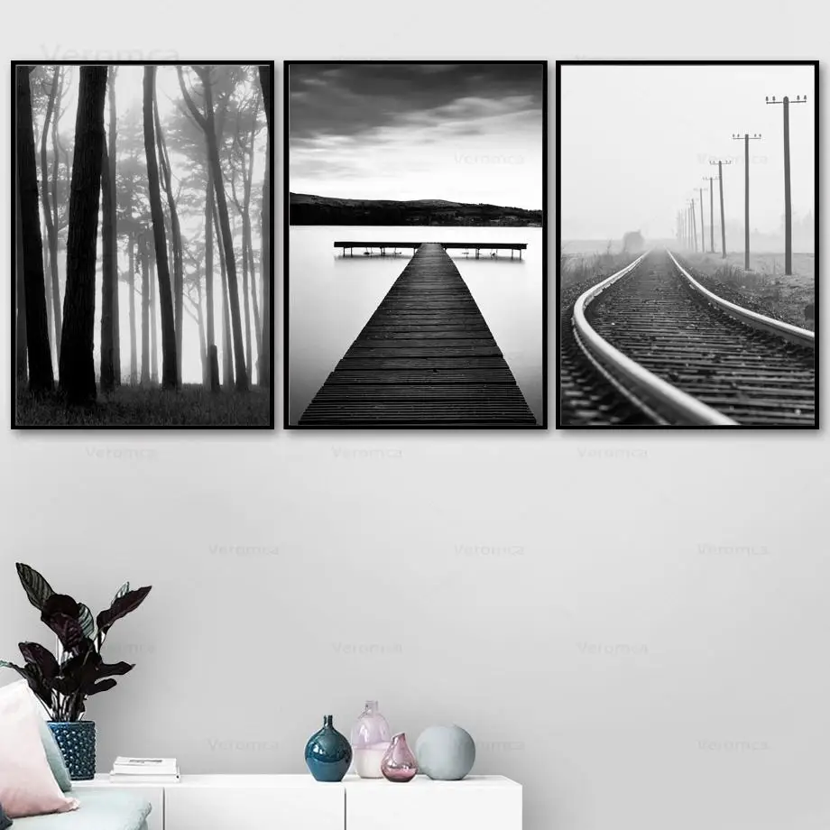 Настенная Картина на холсте морской мост лесное дерево железная дорога черно-белый пейзаж постер без рамки домашний декор Модульная картина
