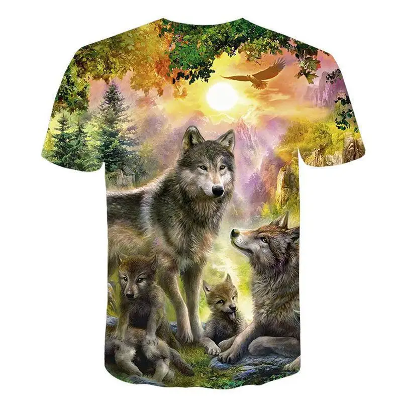 Футболка мужская с круглым вырезом и коротким рукавом, уличная одежда с забавными животными, Повседневная рубашка с 3D-принтом волка, лето