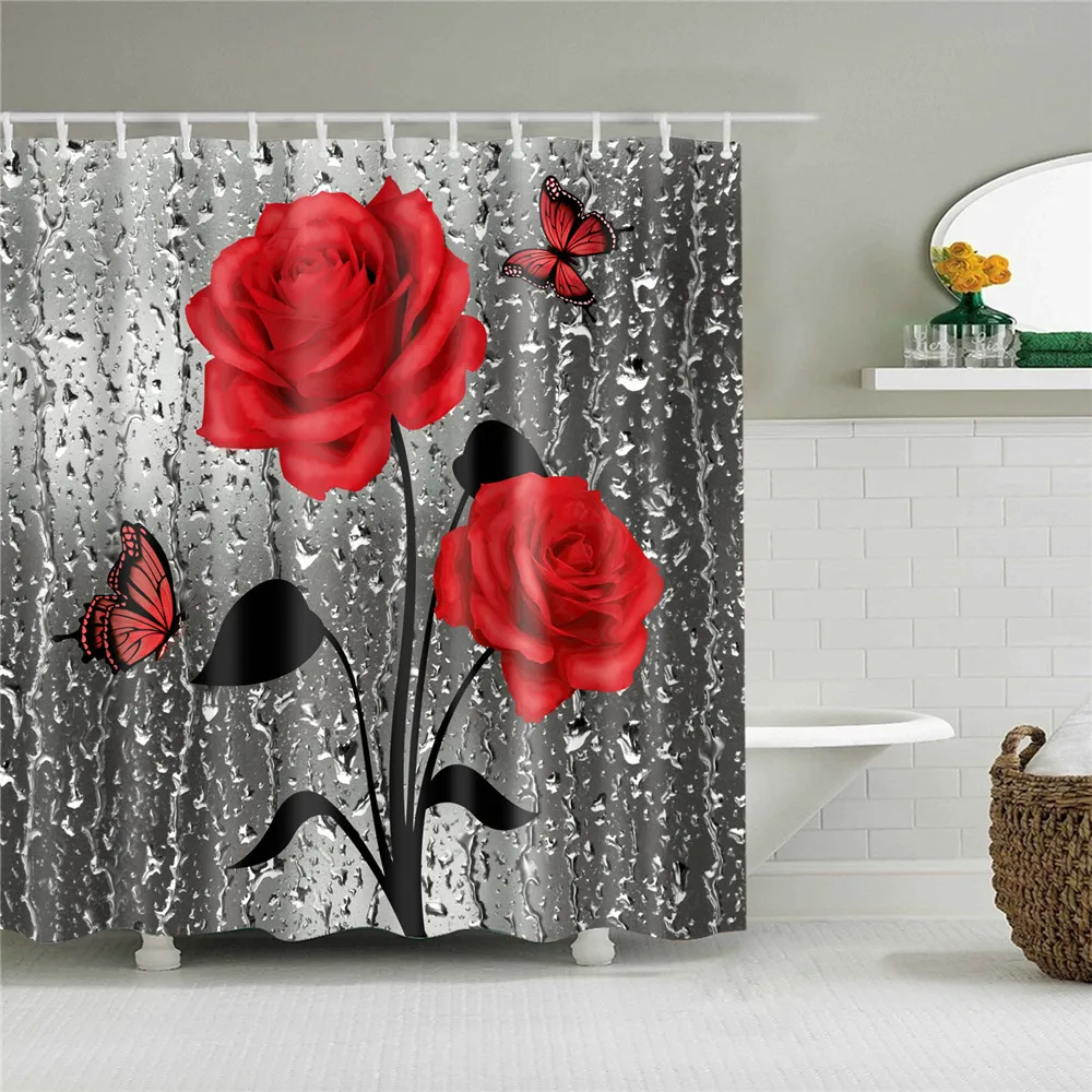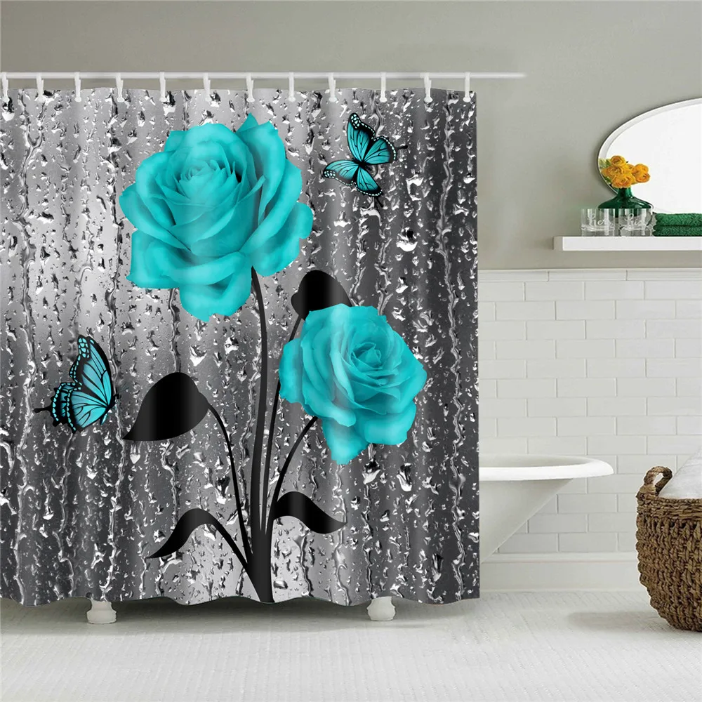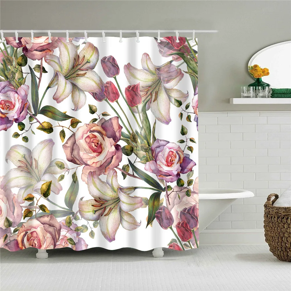 Занавеска для душа в ванную комнату из полиэстера с 3D-принтом подсолнухов и роз