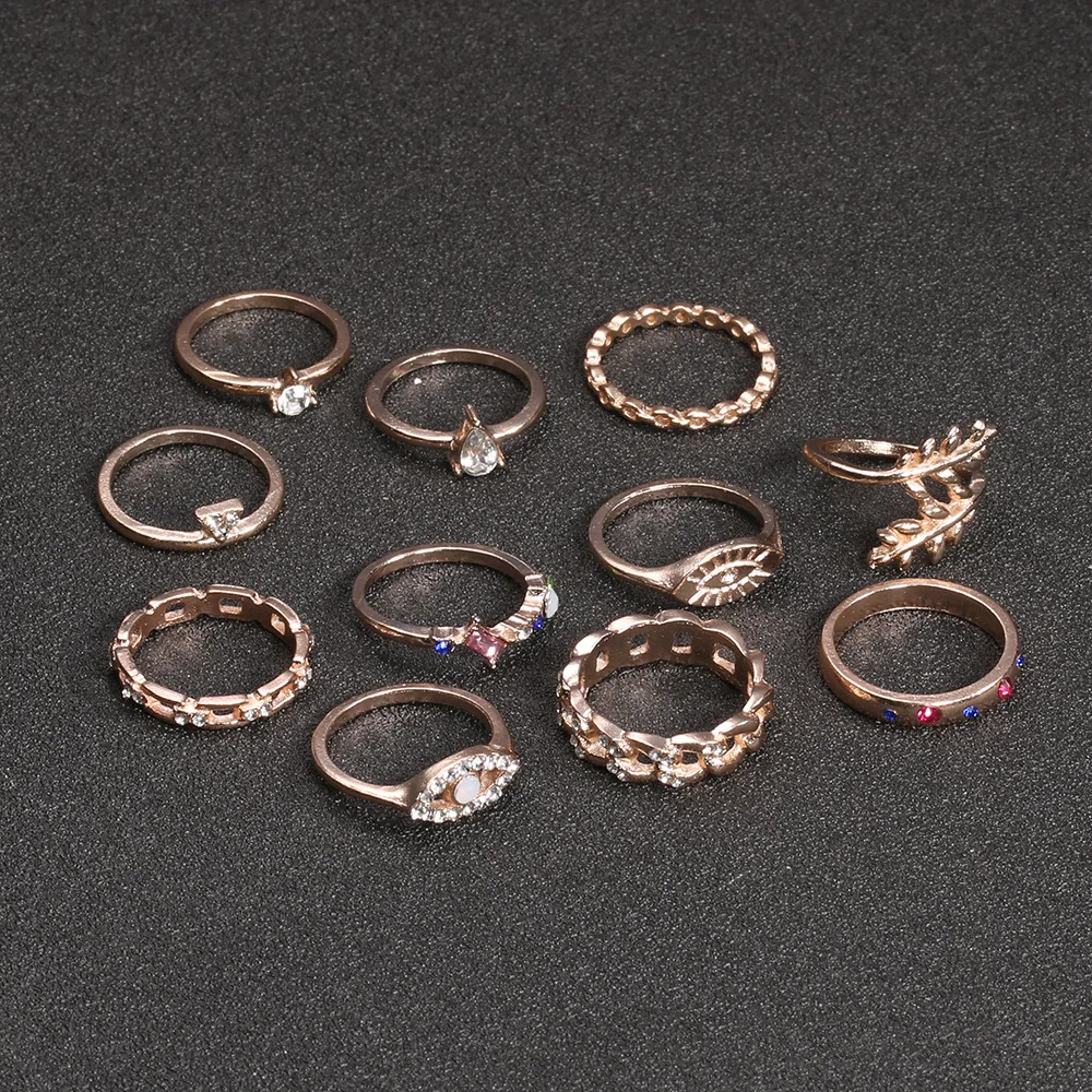 Комплект женских колец в стиле бохо с кристаллами, бабочкой, глазам...