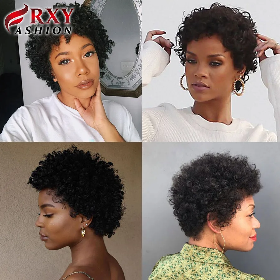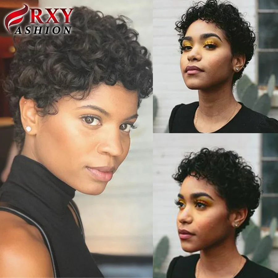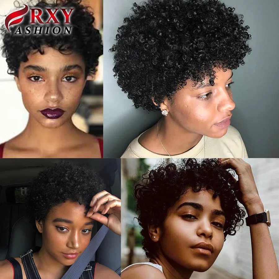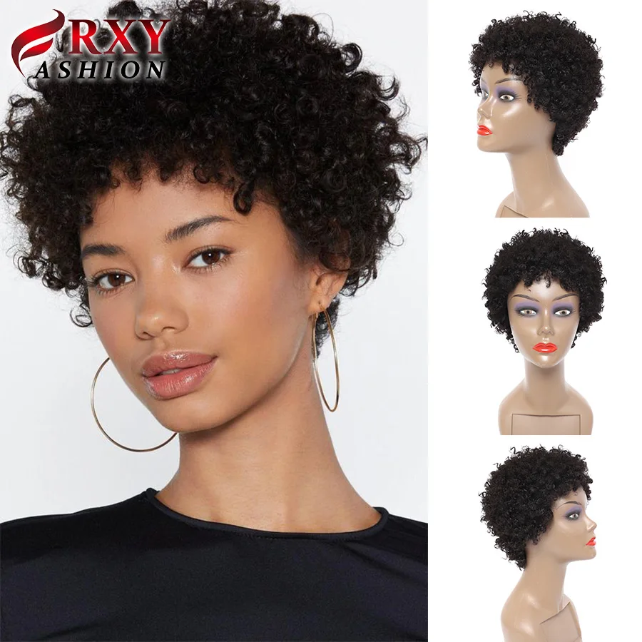 Модные короткие вьющиеся человеческие волосы RXY, парики с вырезами фея, человеческие волосы, парики без клея, полный парик для черных женщин, бразильские волосы без повреждений