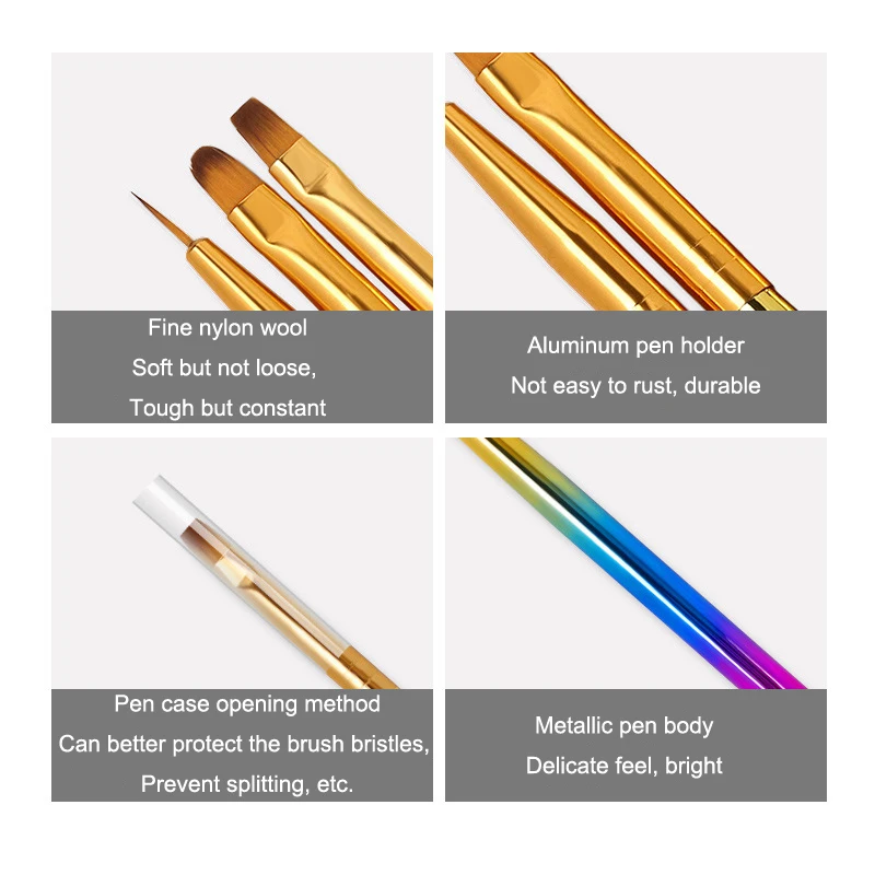 3 шт., Нейлоновые цветные художественные ручки для ногтей
