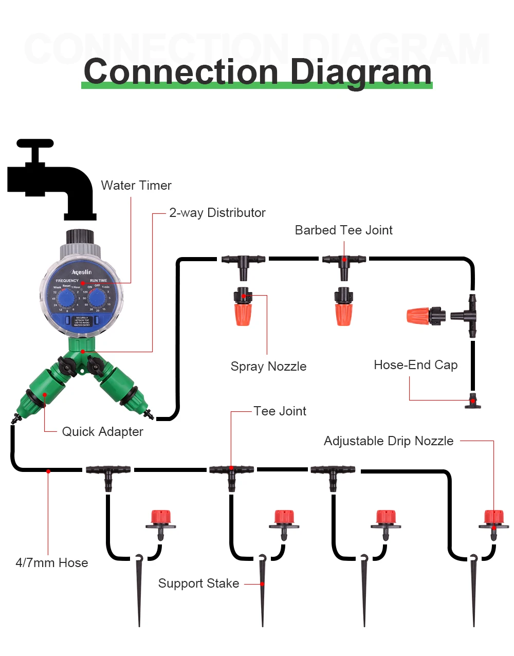 Наборы для полива садовых распылителей Aqualin, 102530 м, 47 мм