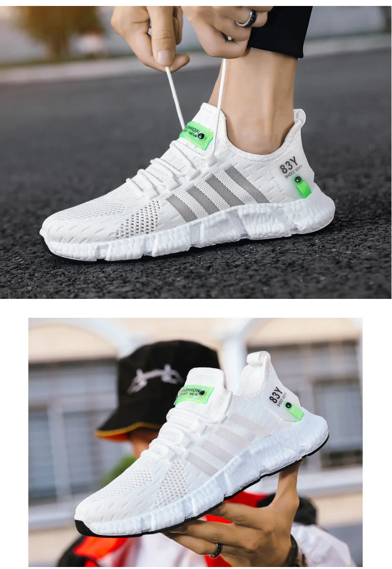 Кроссовки мужские легкие сетчатые, дышащие удобные, Вулканизированная подошва, Повседневная летняя обувь для бега, белые