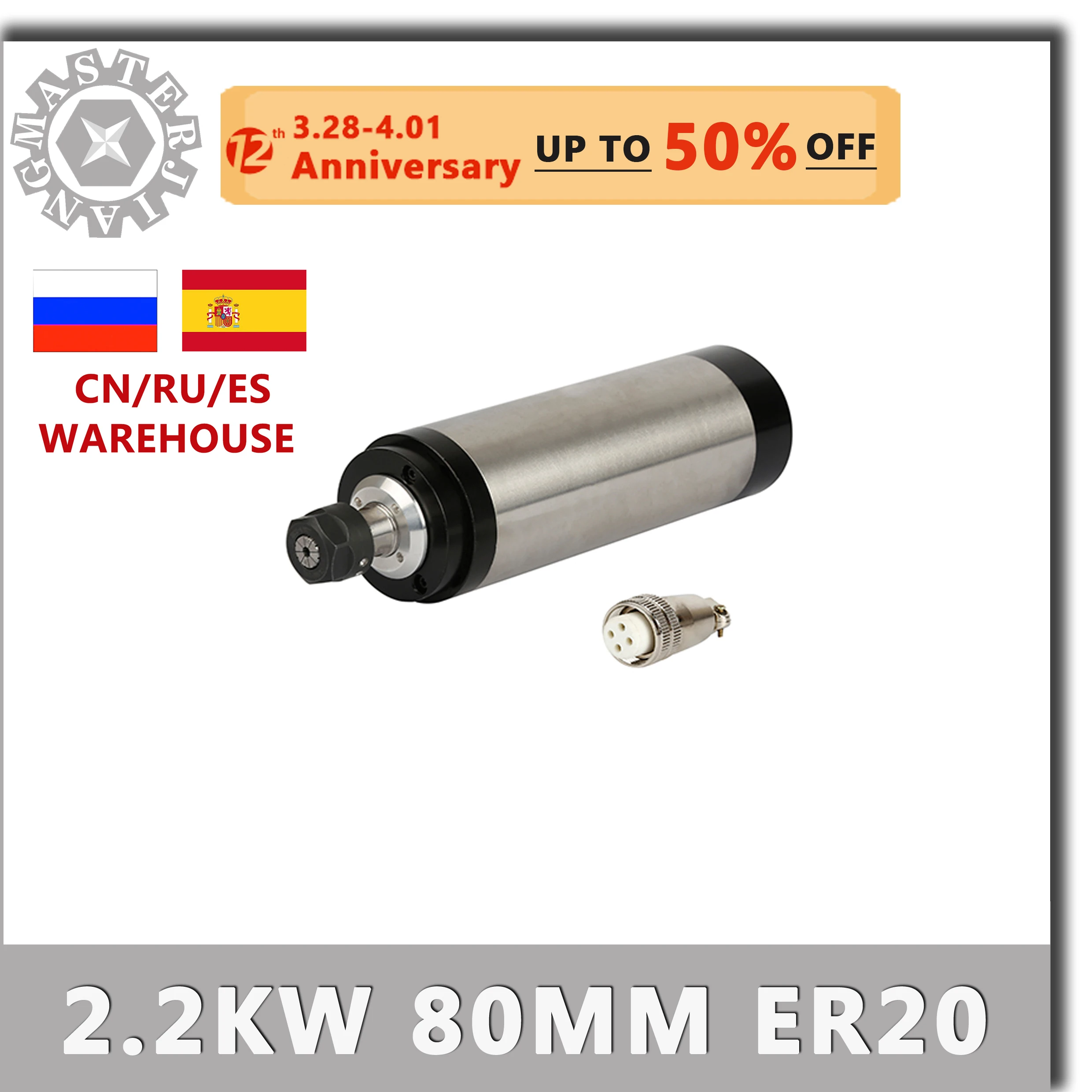 1x2,2 кВт 80 мм ER20 шпиндель с водяным охлаждением