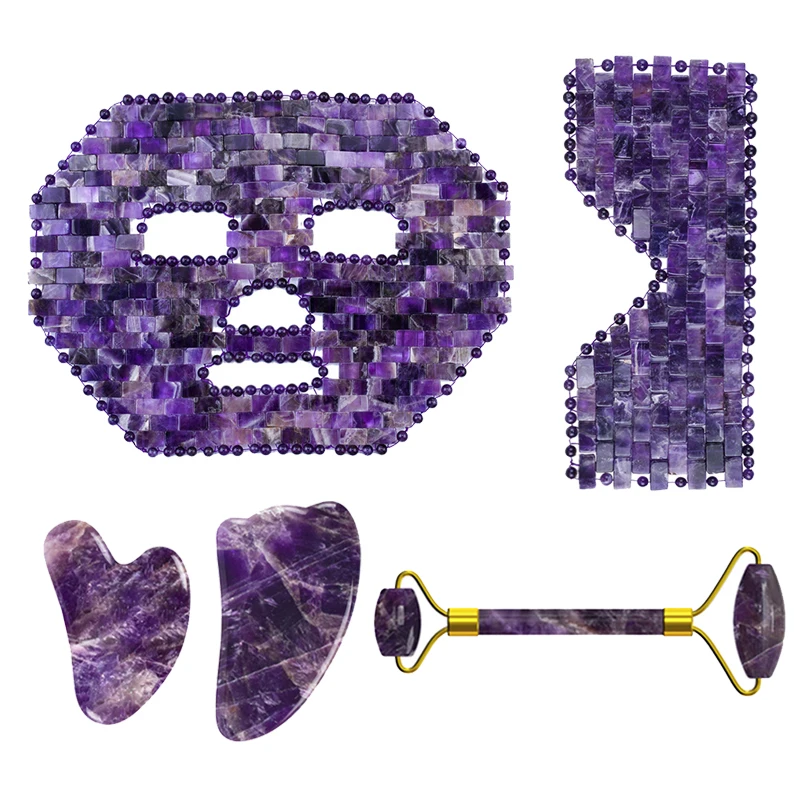 Аметист массажный ролик Guasha доска натуральный фиолетовый кристалл маска для глаз массажер для лица настоящий нефрит гуашь Скребок камень маска для лица
