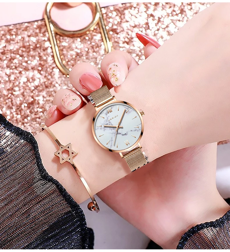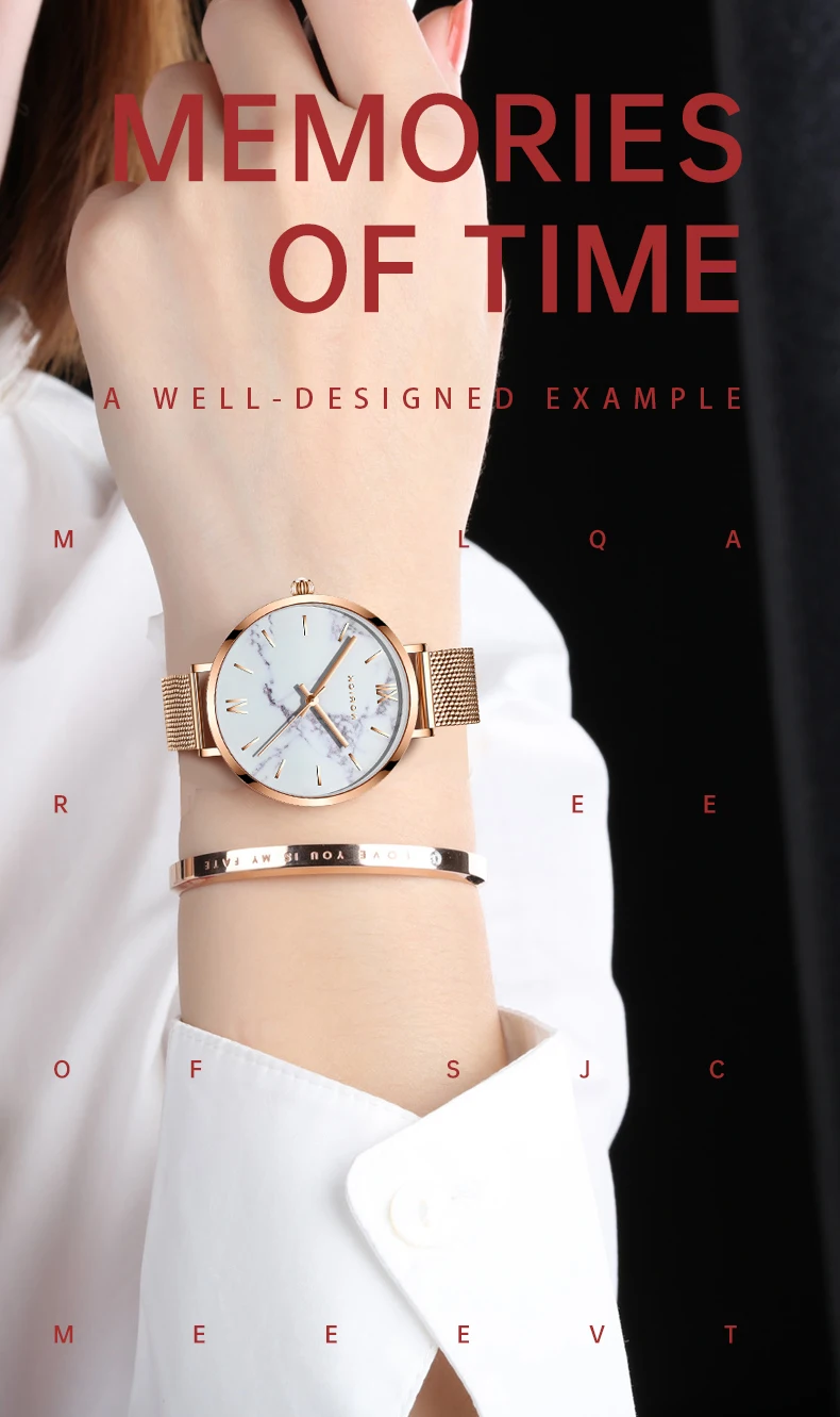 Новинка 2021, женские часы с роскошным мраморным циферблатом, наручные часы для девочек, водонепроницаемые, зеркальные, стеклянные украшения, женские часы с релоготипом