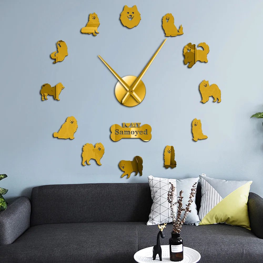 Samoyed Dogs настенные часы DIY большие настенные часы милая собака порода Satsuma большие иглы часы магазин домашних животных Декор подарок для любителей Samoyed