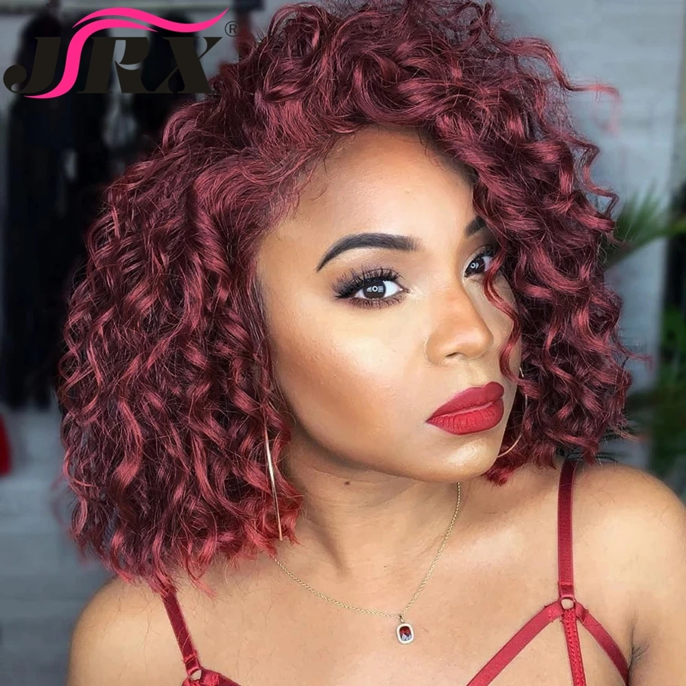 Парик из натуральных волос бордового цвета, холодная волна 99J, 13x1 T, вьющиеся волосы, свободная часть, 180% бразильские парики Реми