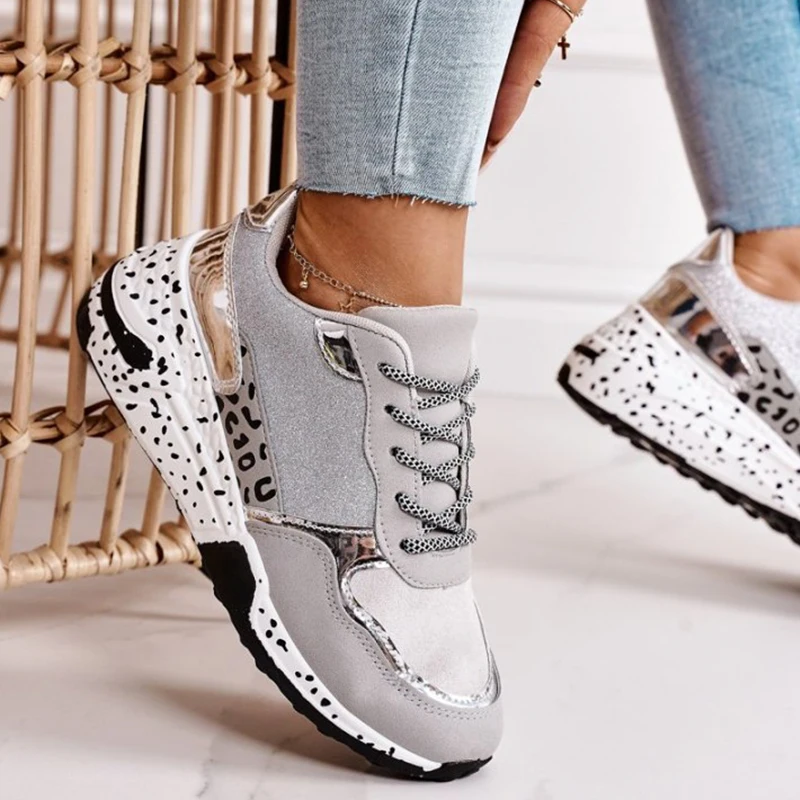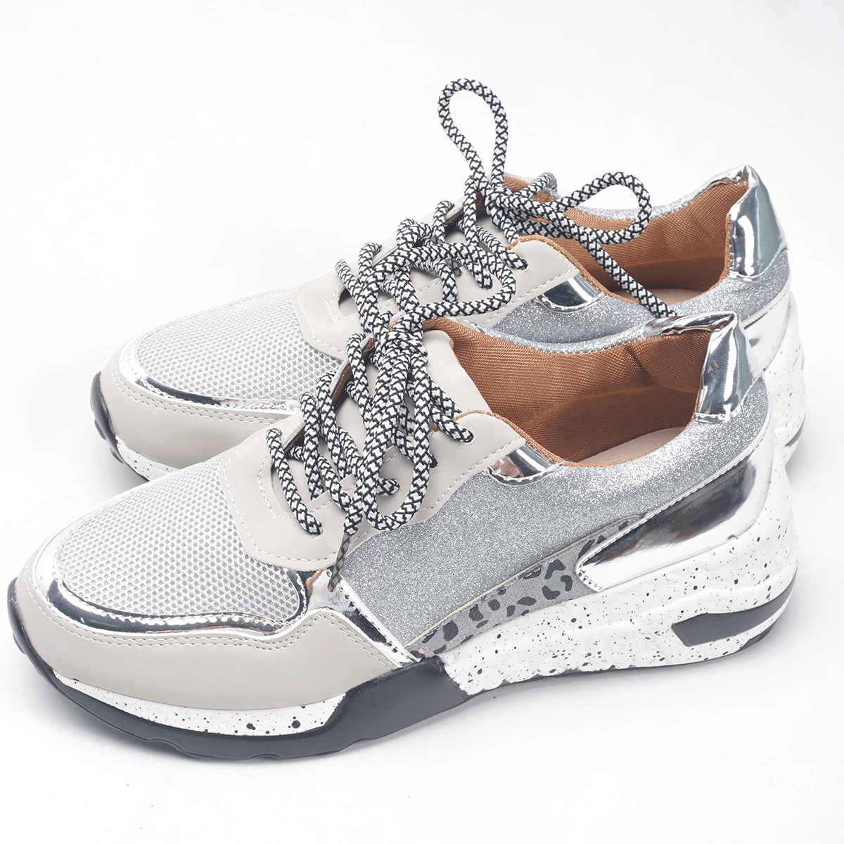 Женские кроссовки, Новая модная женская спортивная обувь с леопардовым принтом, уличные беговые кроссовки для женщин, кроссовки на толстой подошве со шнуровкой