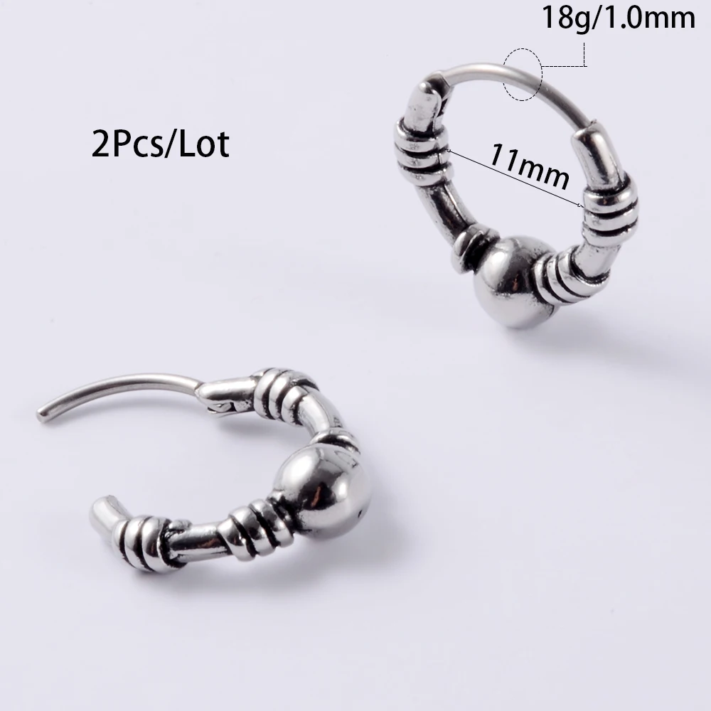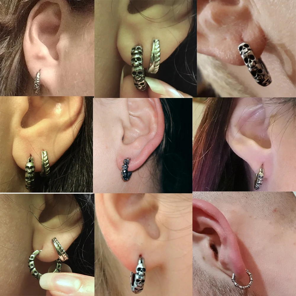Винтажные круглые серьги в стиле панк и рок для мужчин и женщин, парные украшения из нержавеющей стали с черепом для пирсинга носа, модные серьги-кольца для ушей