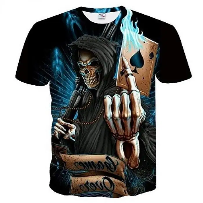 Новинка 2018, забавные мужские футболки с 3d-черепом и покером, популярная брендовая мужская повседневная футболка с 3D-принтом, Мужская одежда, футболка, летний топ азиатского размера