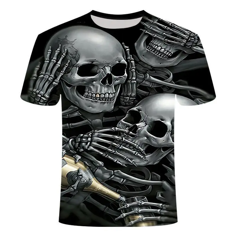 Мужская футболка с 3D-принтом черепа нового дизайна, модная футболк...