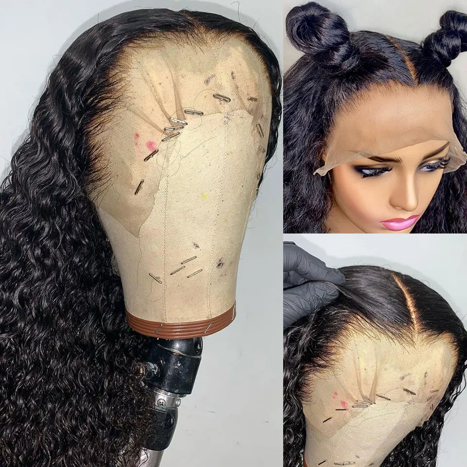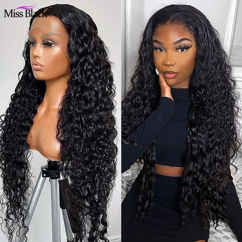Miss Black бразильские бесклеевые кудрявые волосы с глубокой волной 13x 4, парики из натуральных волос, швейцарские фронтальные мокрые и волнистые для чернокожих женщин