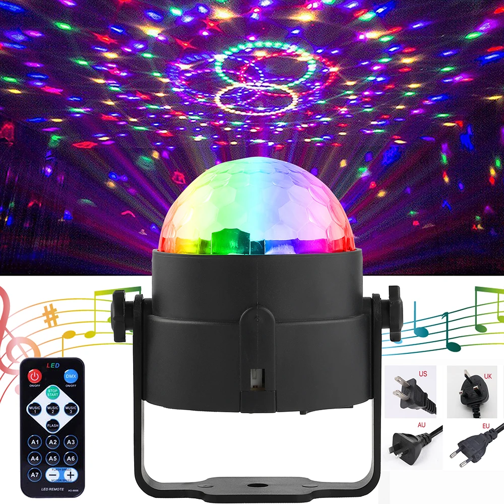 Вращающийся светодиодный диско-светильник с активацией голосом, сценическое освещение для вечерние НКИ, Рождества, свадьбы, украшение для диджея, сценический светильник с эффектом s, 3 Вт