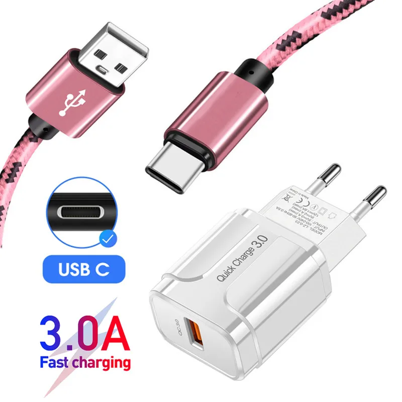 18 Вт QC 3,0 быстрое зарядное устройство X сетевой адаптер европейского стандарта USB кабель Type-C для зарядки телефона USB C провод для Samsung Galaxy S21 S9 S8 A12 A42 A52 5G usb кабель для Motorola G9 Plus G9 Play LG бархатные K41S K51S для Xiaomi Redmi Note 10s 10 9 pro мобильный телефон кабели зарядного устройства длиной 1 м/2 м.