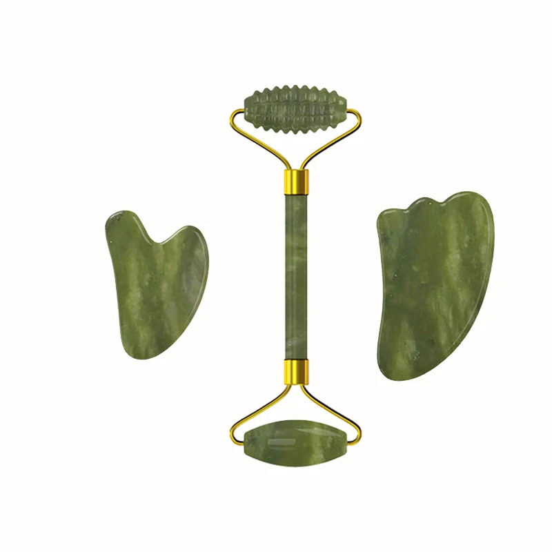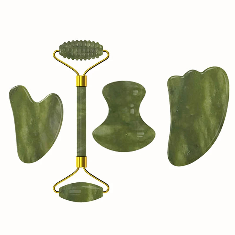Натуральный камень нефритовый ролик Guasha доска набор массажер для лица гуашь скребок Настоящий камень ролик для лица гуаша Массажная доска
