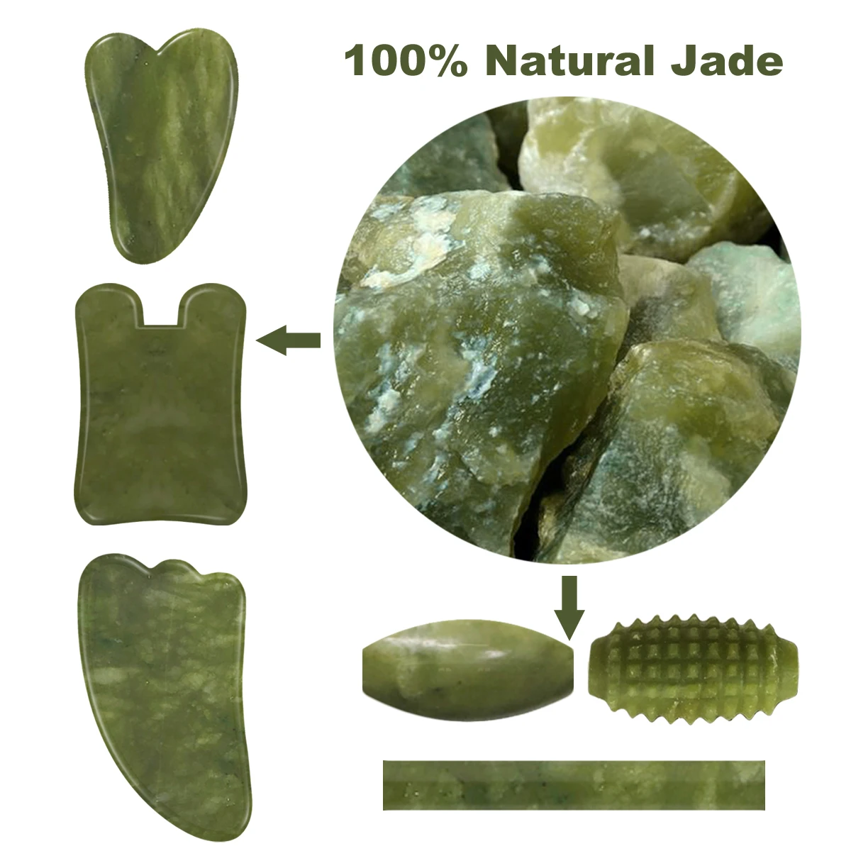 Набор пластин для Массажа Гуаша, нефритовый массажер для лица с натуральным камнем, скребок для гуаши