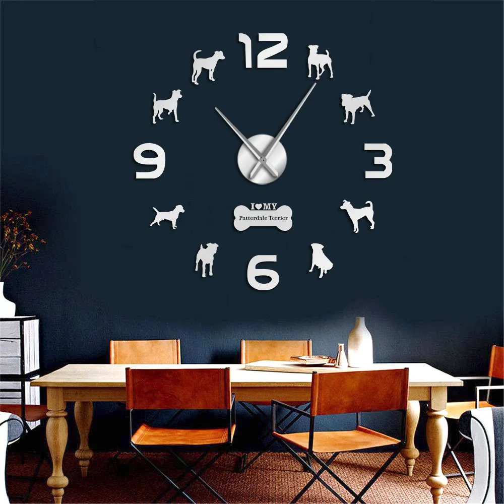 Терьер-терьер, зеркальные настенные художественные наклейки, сделай сам, большие настенные часы, английский узор, Висячие безрамочные бесшумные настенные часы