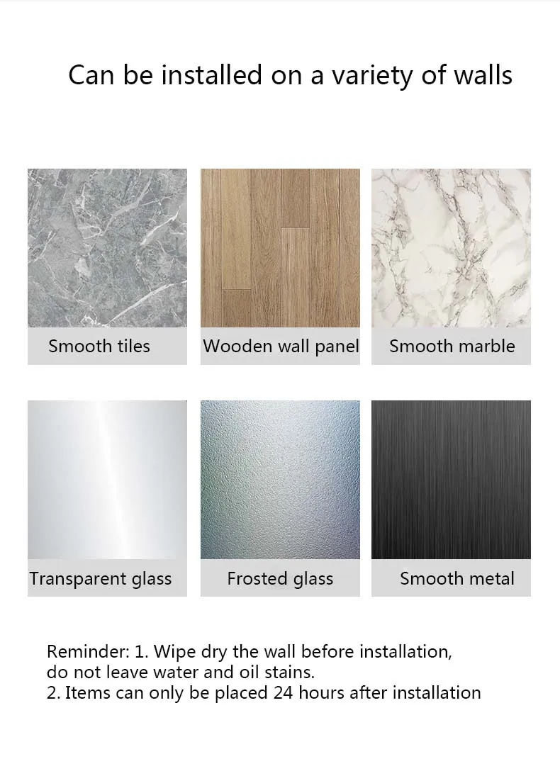 Простая установка: Просто снимите задний вспомогательные детали и зафиксировать их к стене, и они будут держаться крепко к стене. Вы можете выполнить установку в течение 1 секунды. Без винтов, не имеет гвоздей, никаких инструментов.