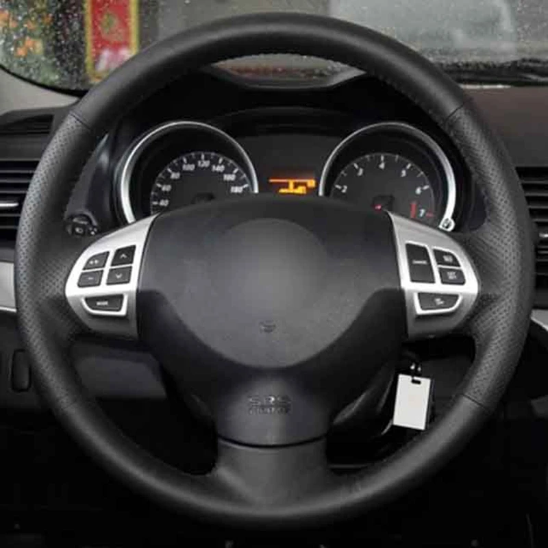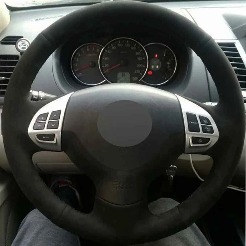 Рука сшитый черный замшевый чехол рулевого колеса автомобиля для Защитные чехлы для сидений, сшитые специально для Mitsubishi Lancer X 10 2007-2015 Outlander 2006-2013 ASX 2010-2013 пониt