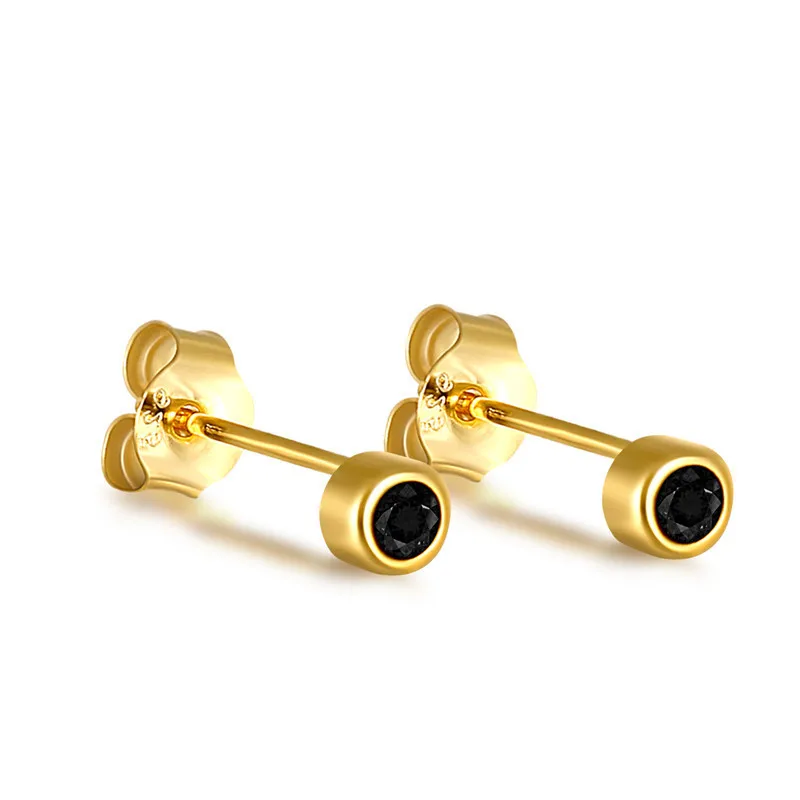 Винтаж Черный Круглый камень маленькие серьги 925 стерлингового серебра желтое золото в минималистском стиле, серьги для женщин, свадебные ювелирные изделия