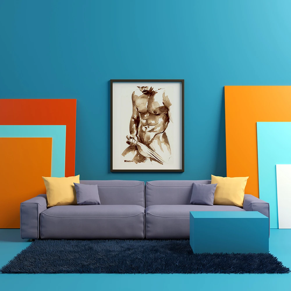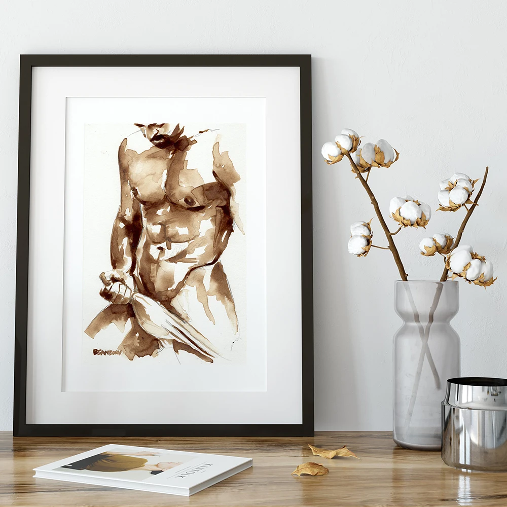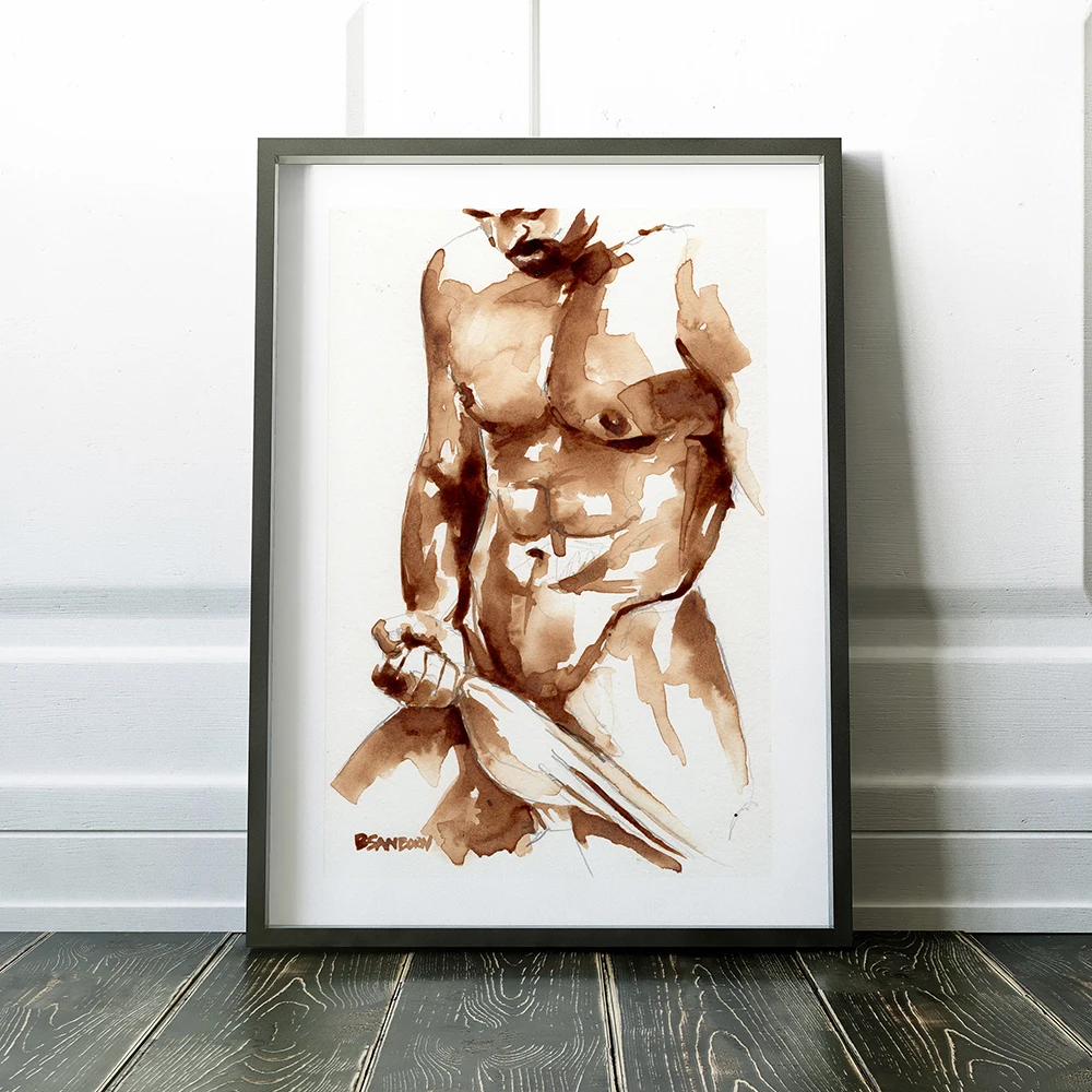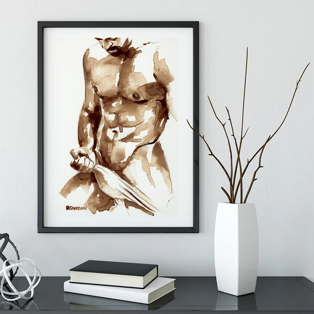 Картины на холсте кофейного цвета, сделанные с кофейным большим кофе Картина для геев, гомосексуальная Обнаженная картина для гостиной, домашний декор