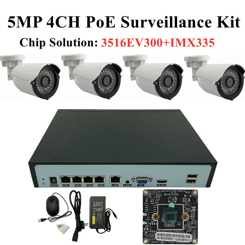 4CH 532MP IP 48V наружняя камера видеонаблюдения PoE Kit 9*5 Мп NVR 1 SATA цилиндрическая камера с датчиком движения, 18 светодиодов, ночное видение RTSP CMS P2P