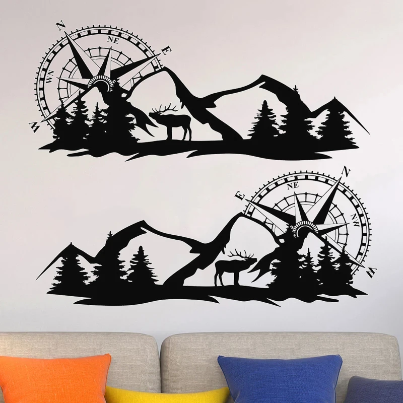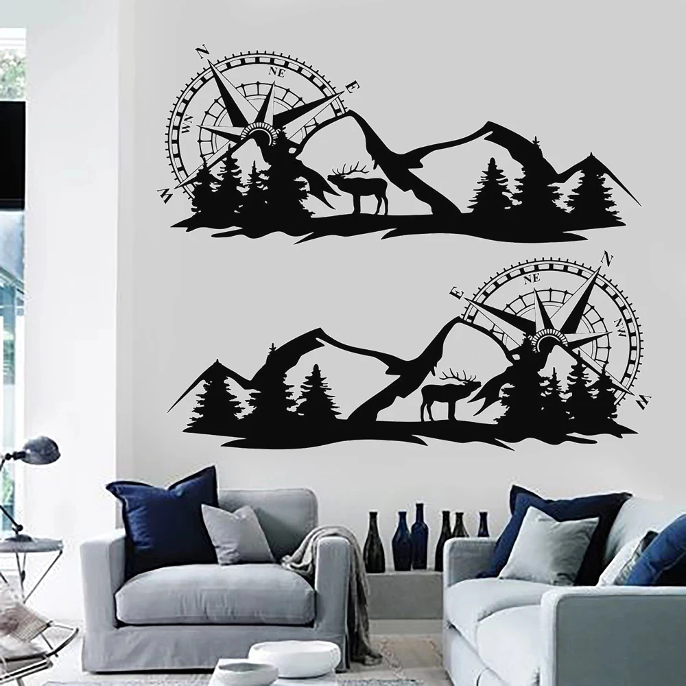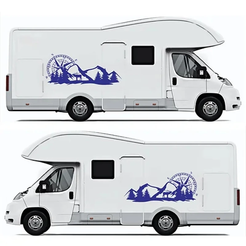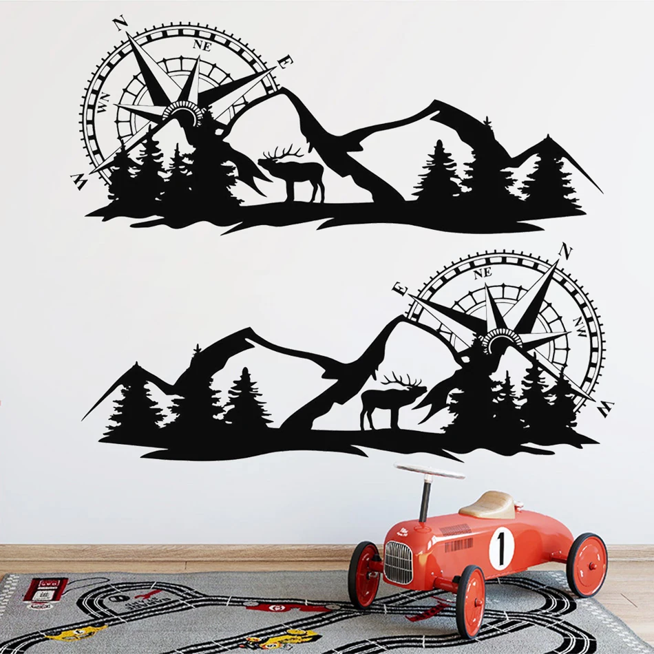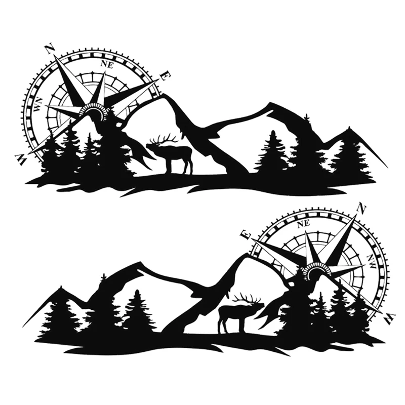 Виниловая наклейка на стену в виде грузовика с компасом, 2 шт., наклейка на корпус, большой компас, навигация с Горным оленем, дом на колесах, автодом DW10173