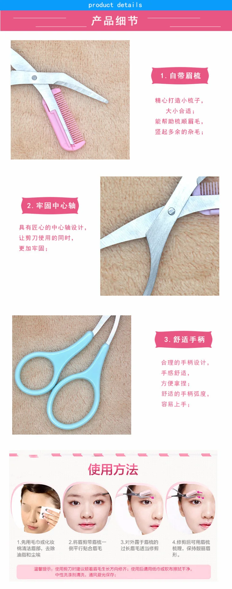 1 шт. розовый триммер для бровей, ножницы с расческой для удаления ...