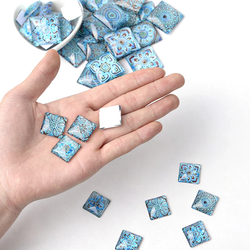 Xinyao 20 шт.лот 10 шт.лот 15 мм20 мм25 мм30 мм Цветок Геометрия смешанный узор стеклянный квадратный кабошон для DIY ювелирных изделий