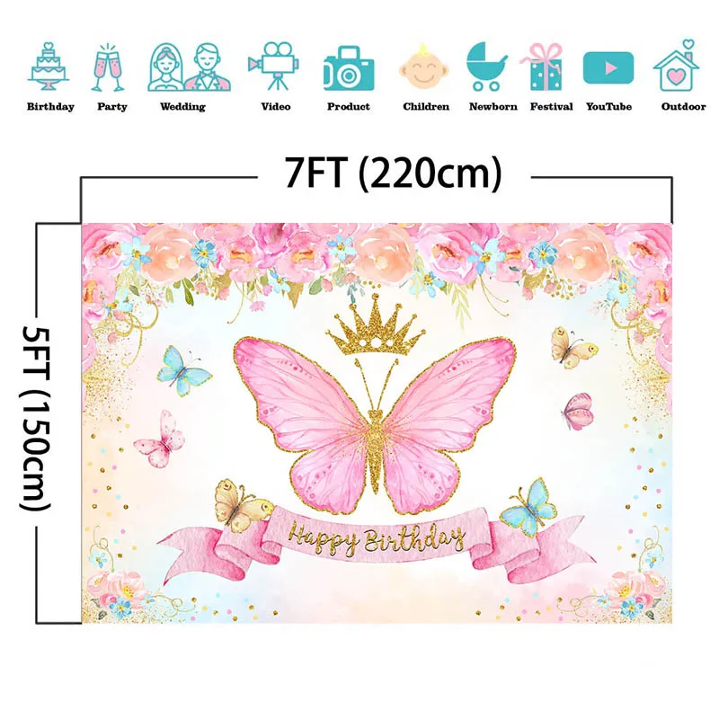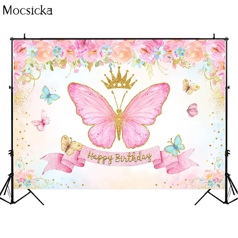 Фон для фотосъемки с изображением цветов, абстрактных бабочек и цветов