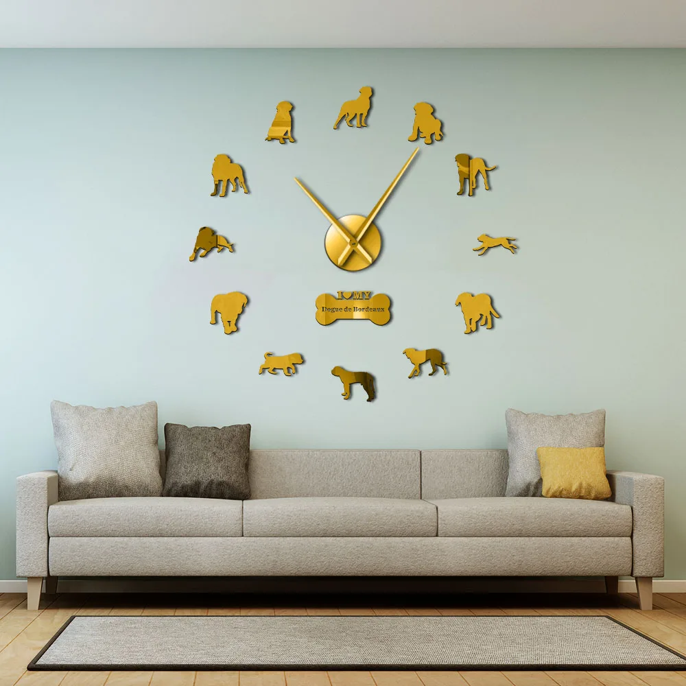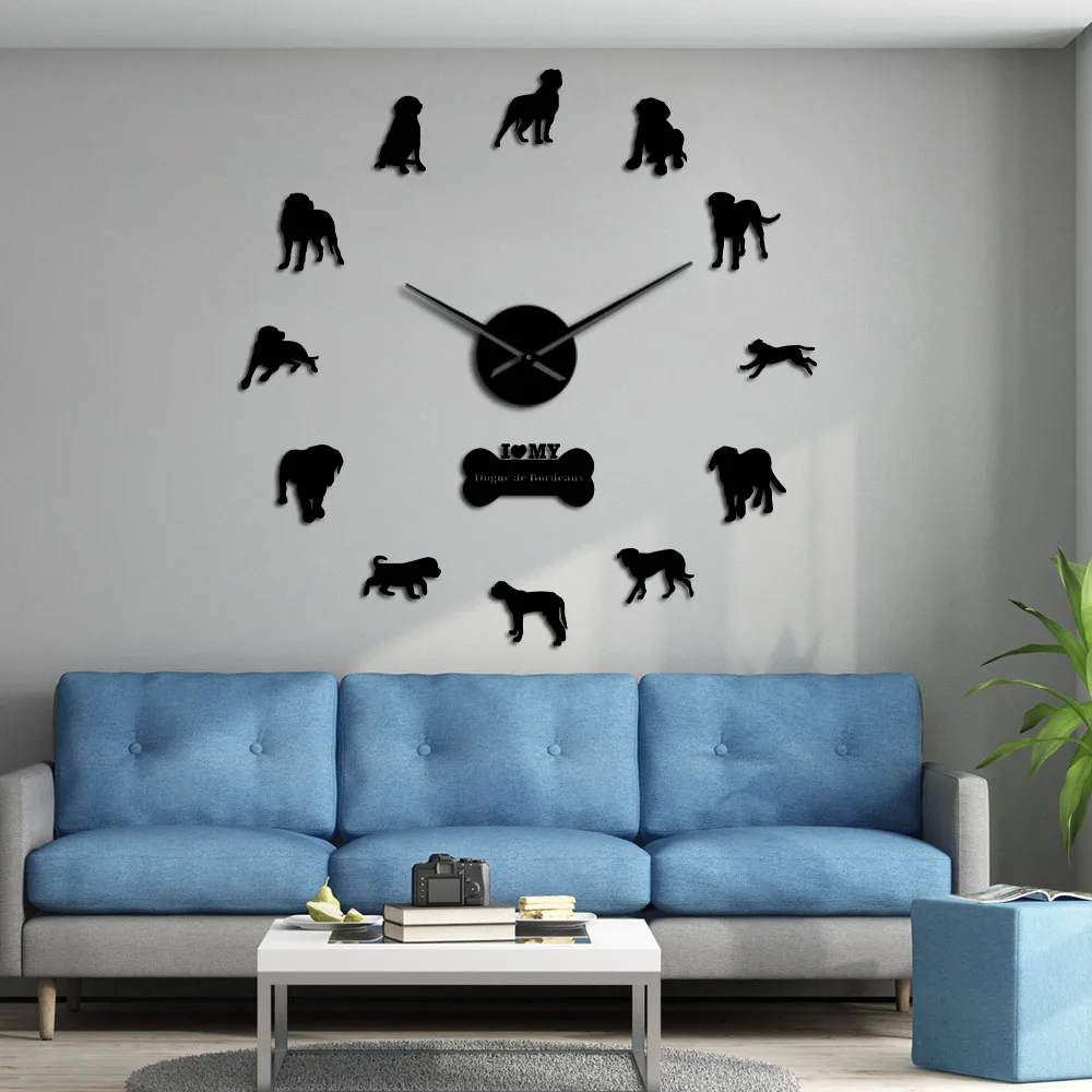 Французский дог де Бордо мультфильм DIY настенные часы домашний декор крутая собака породы Детская комната Детская Бесшумная винтажная настенные часы, подарки
