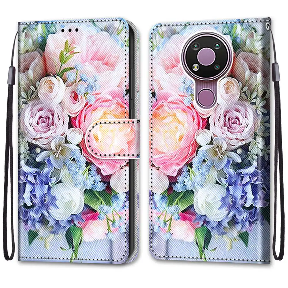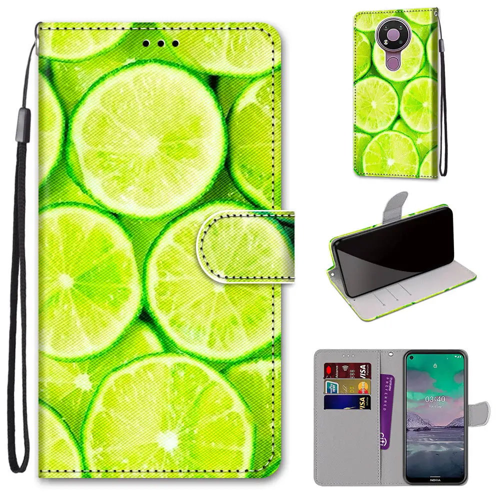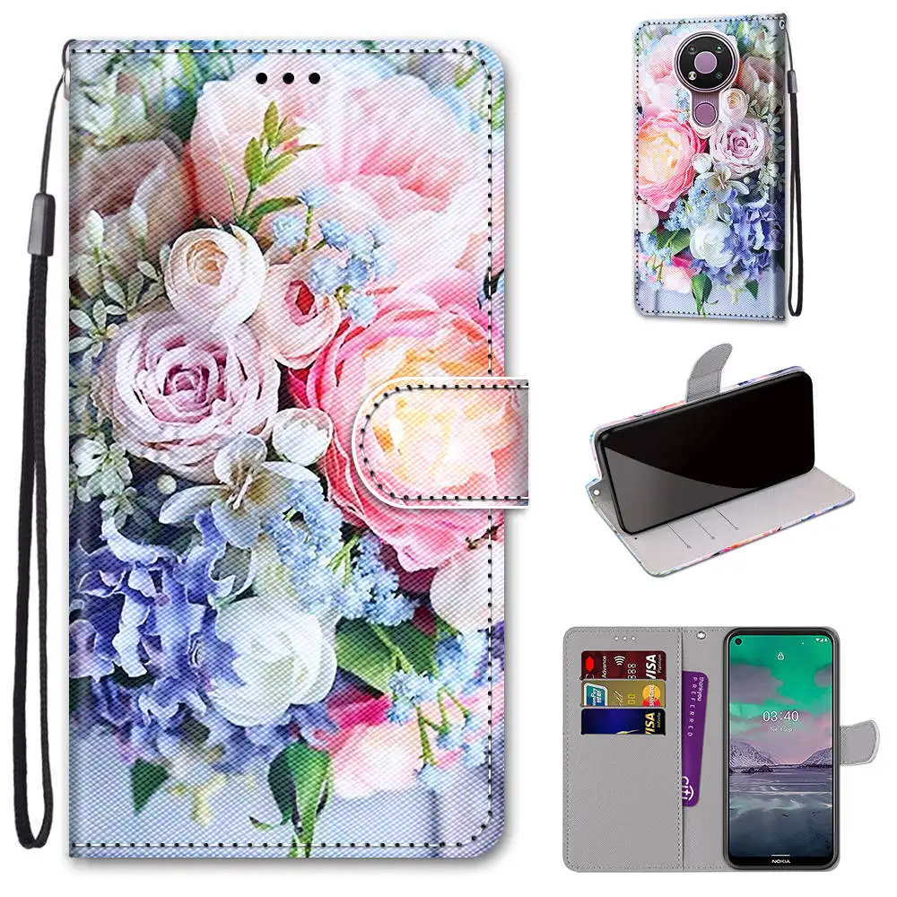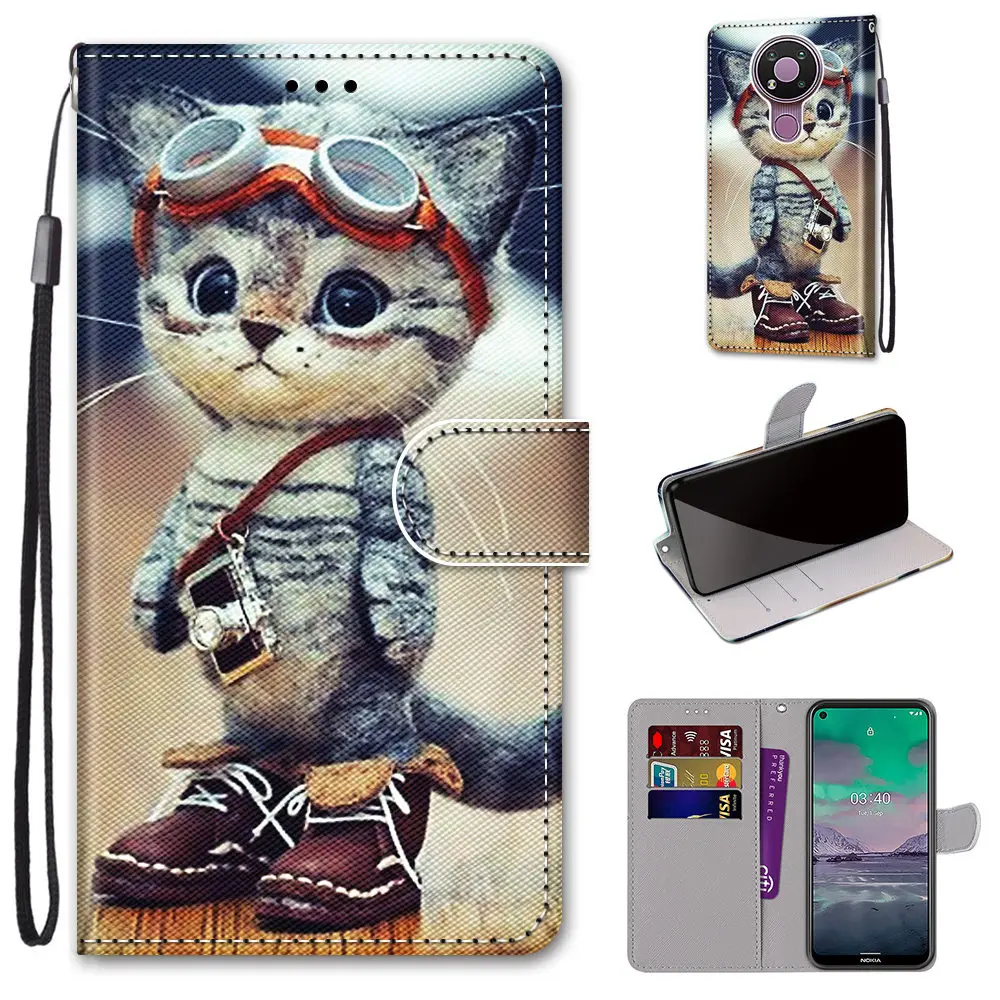 Кожаный чехол с принтом для Nokia 2,4 3,4, чехол-книжка с откидной ...