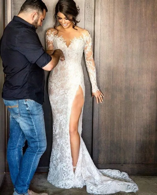 Женское свадебное платье с длинным рукавом, кружевное платье-Русалк...