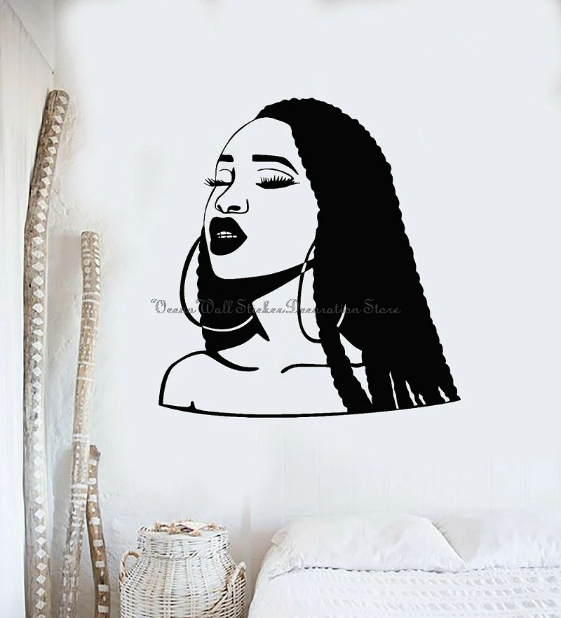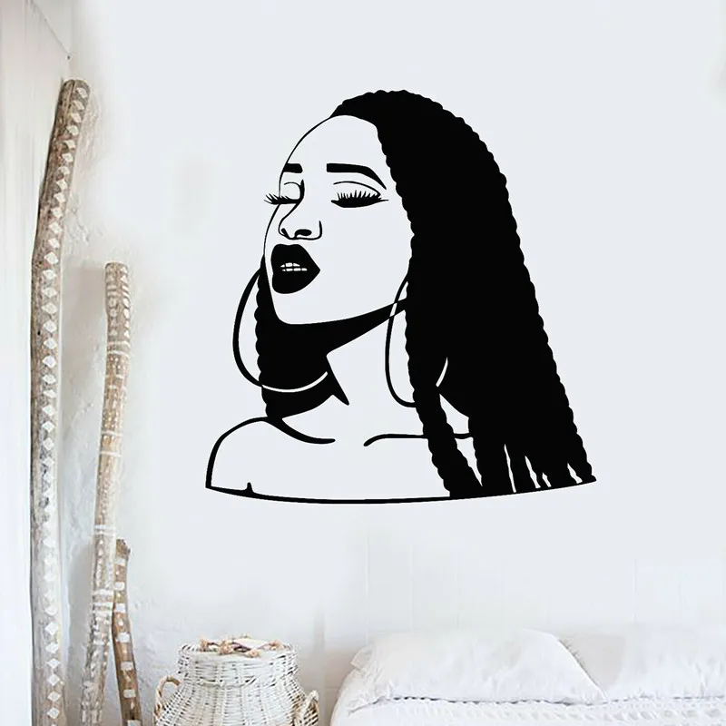 Виниловые наклейки на стену, прическа, афроамериканская красивая женщина, девушка, спальня, гостиная, салон красоты, украшение для салона, наклейка