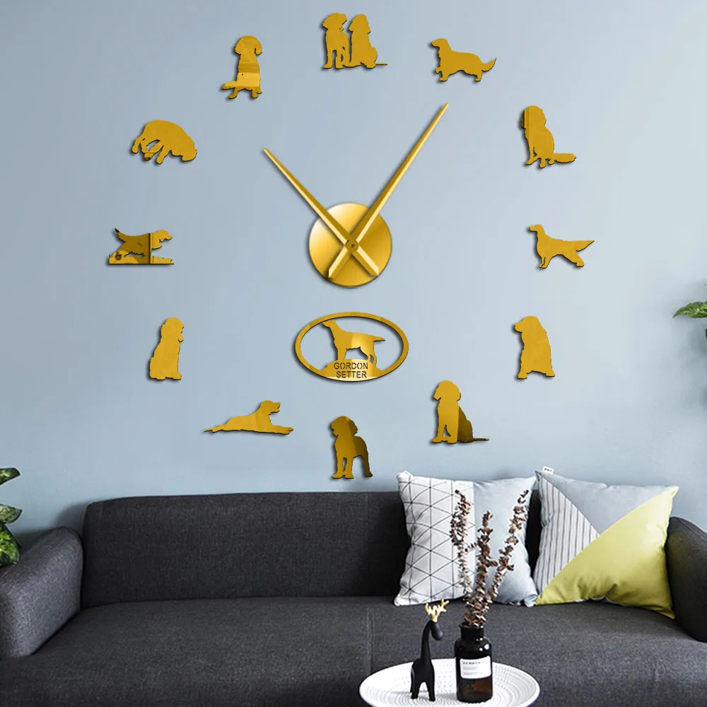 Гордон сеттер большие настенные часы большие DIY настенные художественные наклейки гигантские часы для собак и домашних животных часы для художника Ретро домашний Декор подарок владельцам собак