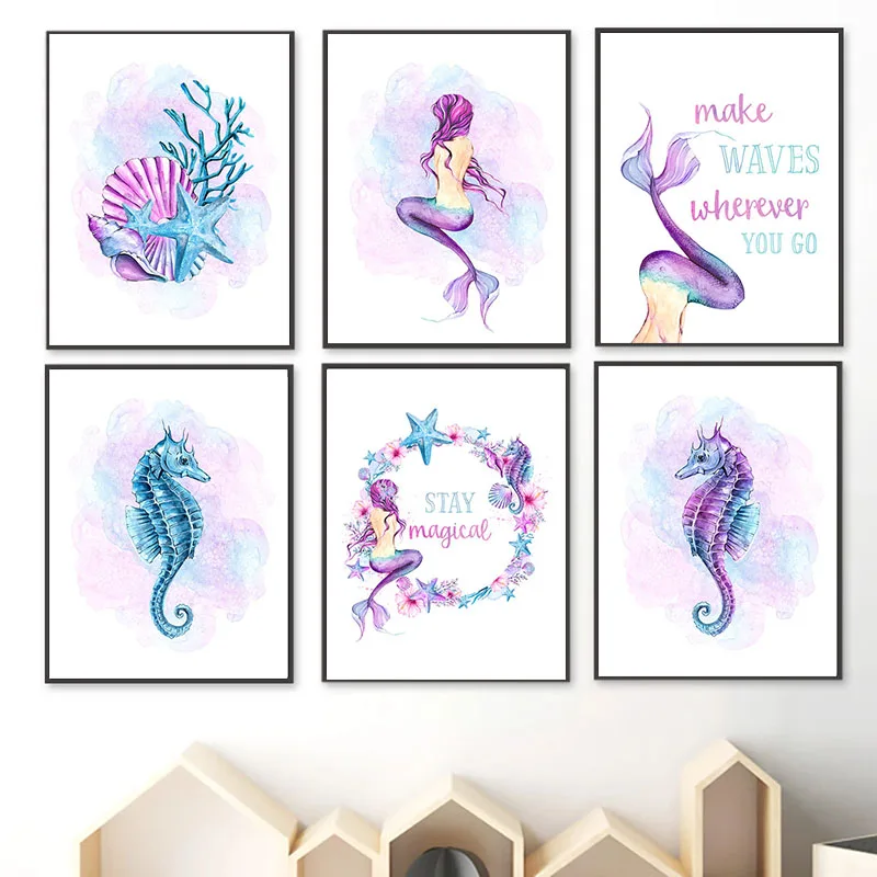 Современная живопись, домашний декор, настенное искусство, абстрактное изображение на холсте, мультяшный постер с морским коньком и дизайнерские принты для выставочного зала