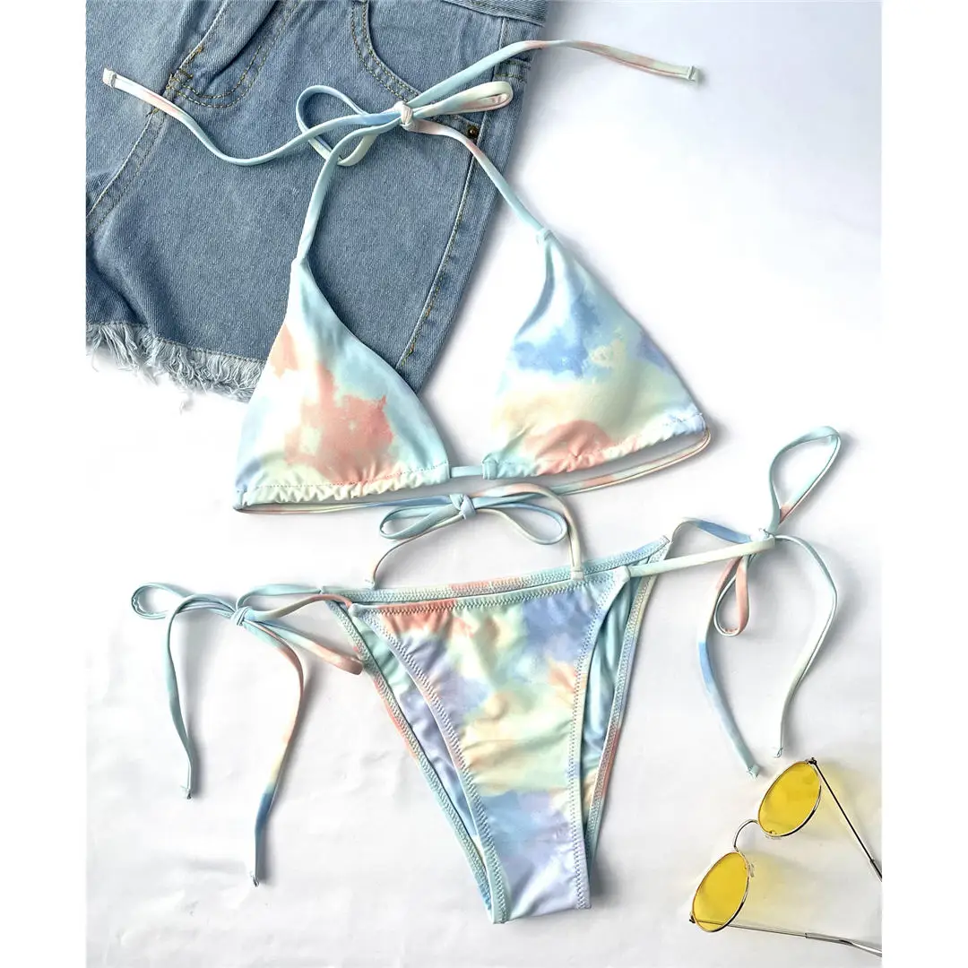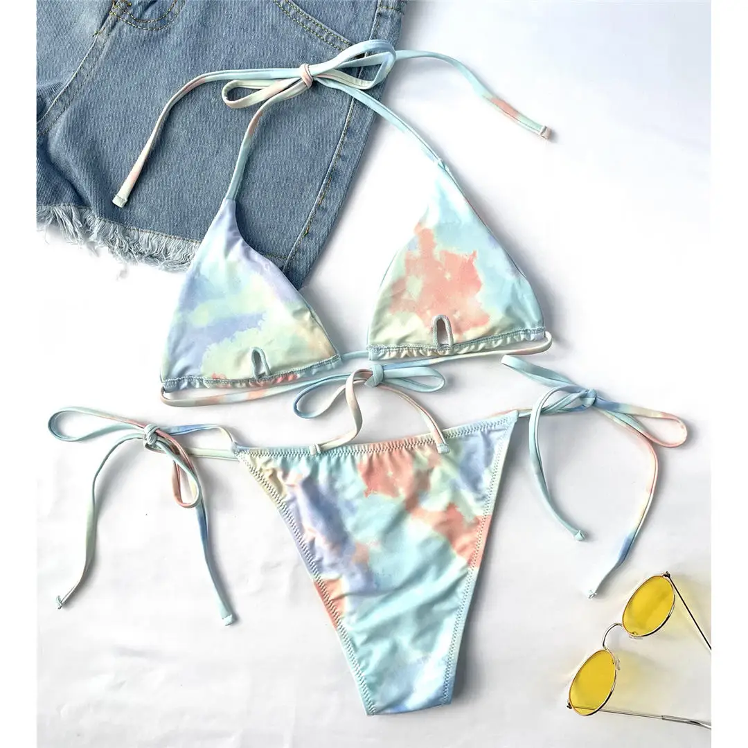 Бразильский женский купальник бикини с завязкой на шее, женский купальник, комплект бикини из трех предметов с саронгом, купальный костюм V2912