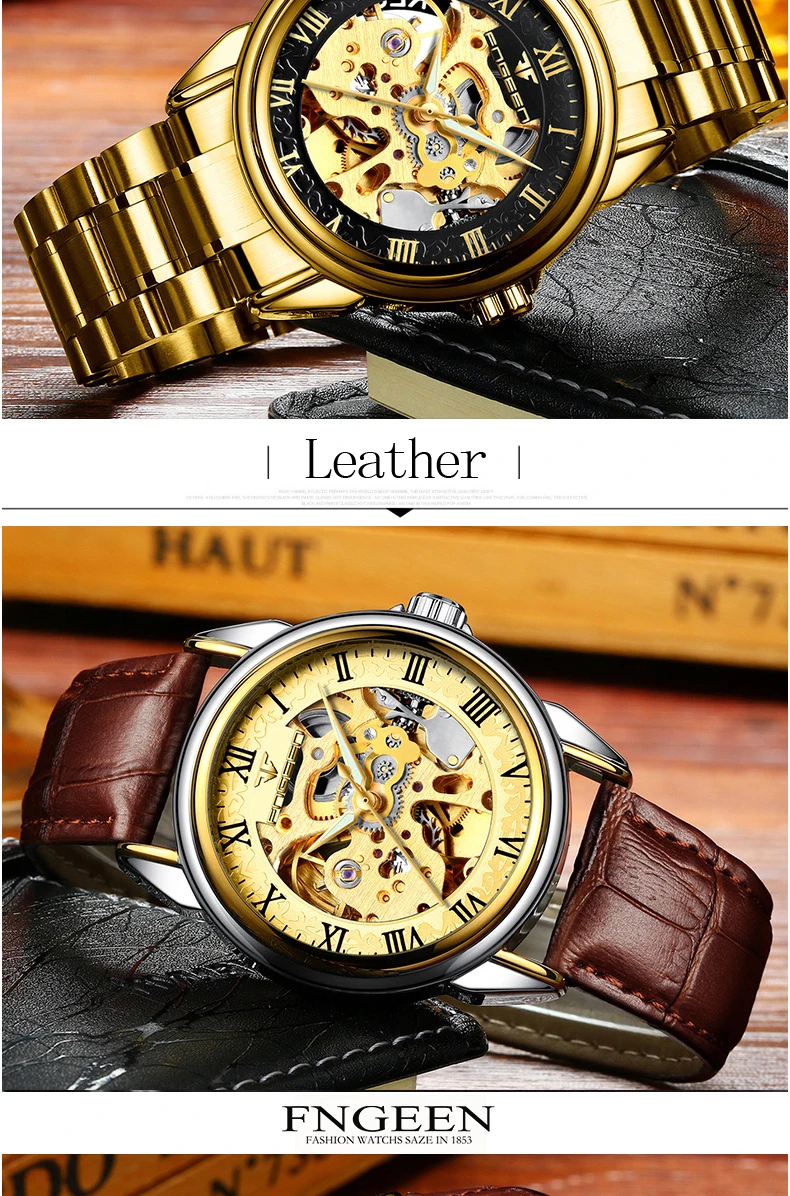 Бренд: FNGEENСтиль: модная деловая роскошьДвижение:Автоматическое механическое движениеЧехол: нержавеющая стальЗастежка:Складная застежка с безопаснойРемешок: нержавеющая сталь