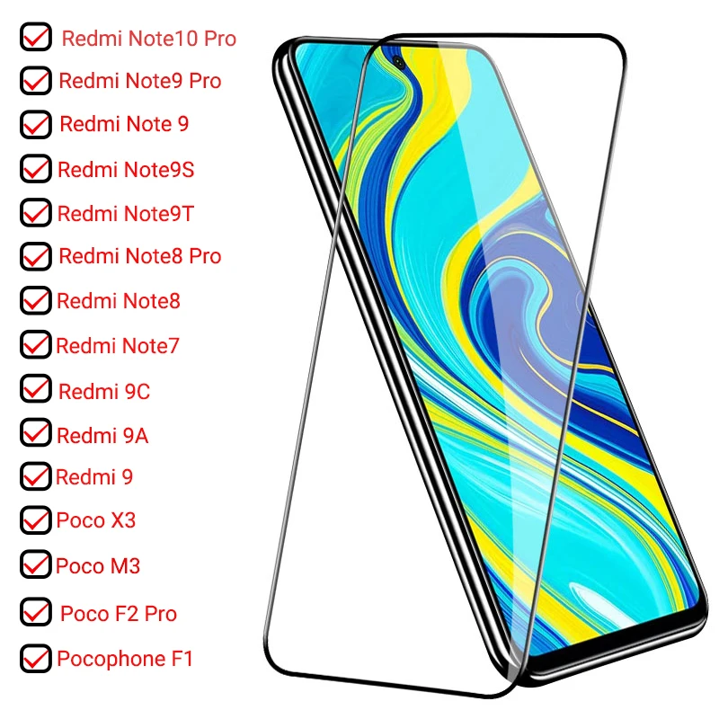 9D полное закаленное стекло для Xiaomi Redmi Note 10 9 Pro защита экрана Poco X3 NFC M3 Redmi 9C 9A 9s 9T 8T 8 7 K40 F2 F1 стекло
