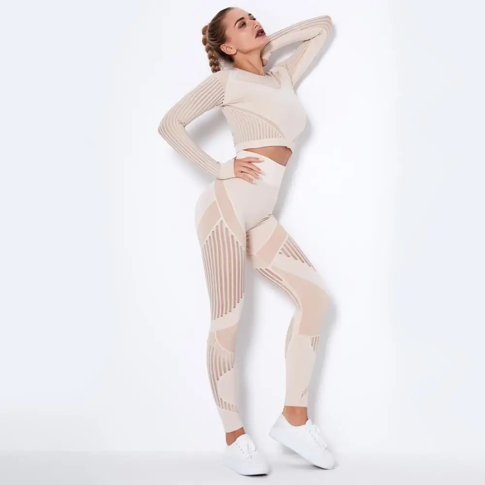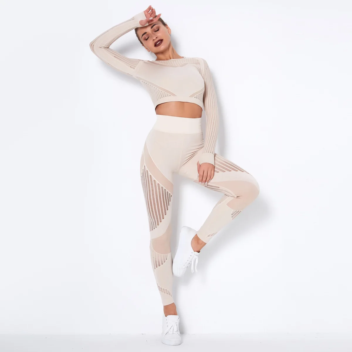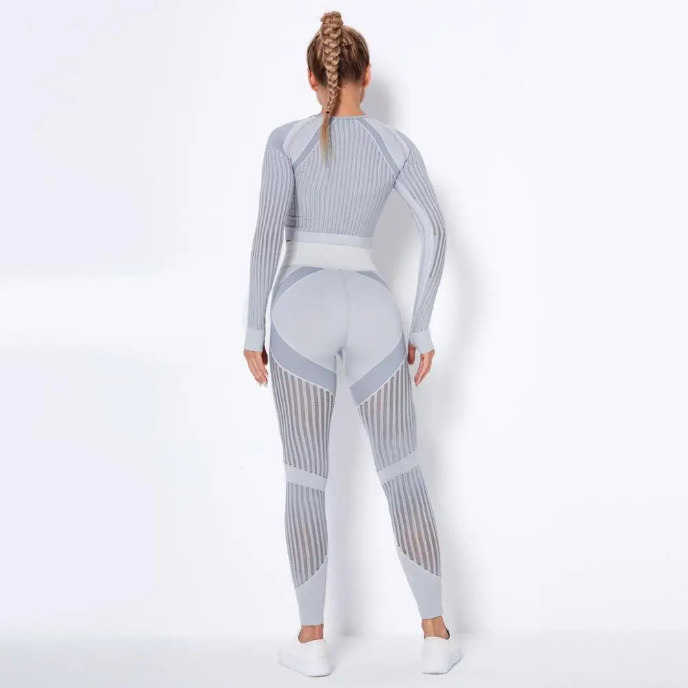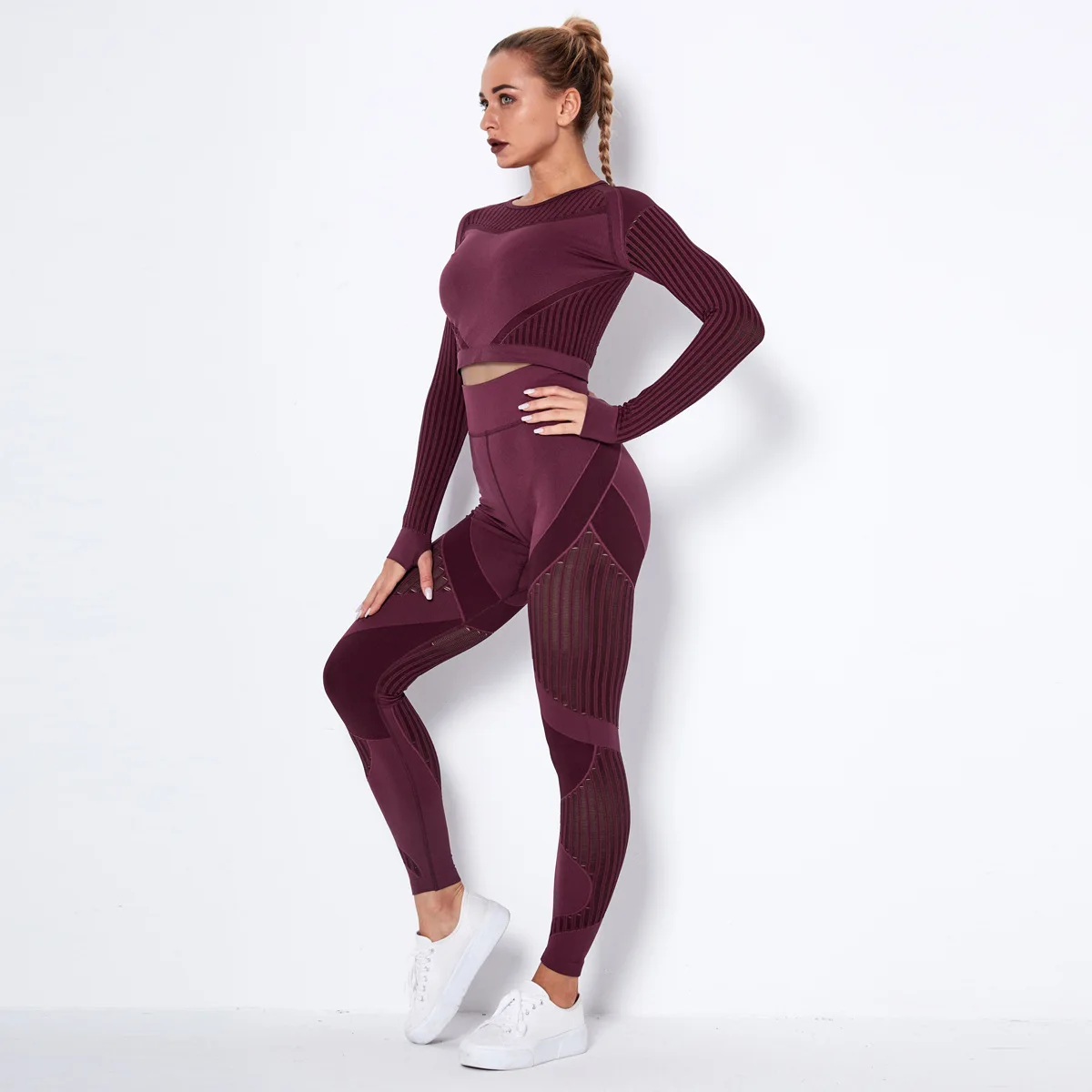 Выдалбливают Бесшовные Йога Спортивный комплект из двух предметов одежды для женщин черного цвета из 2 частей укороченный топ-Бюстгальтер леггинсы для тренировок и занятий в спортзале, одежда для занятий фитнесом, спортивные комплекты