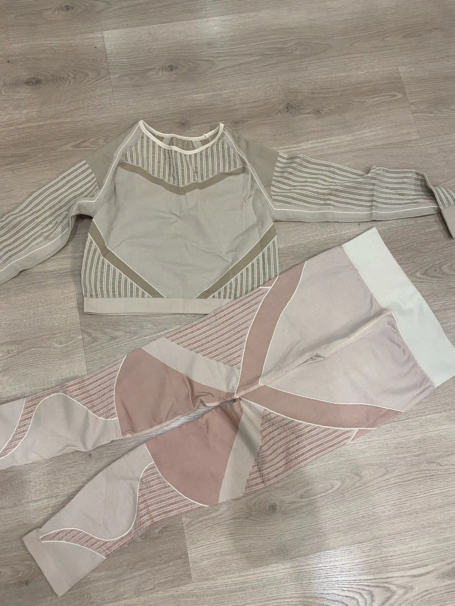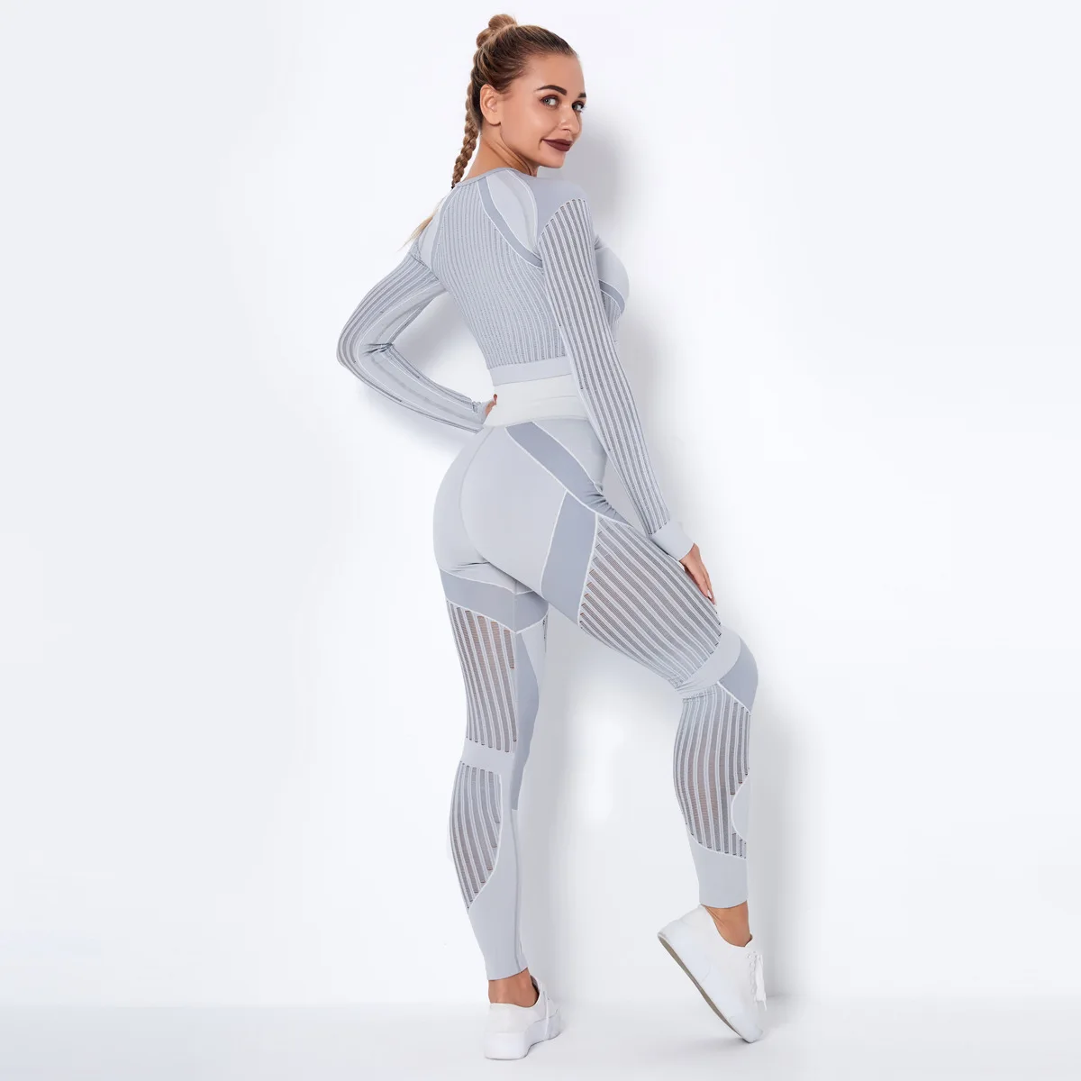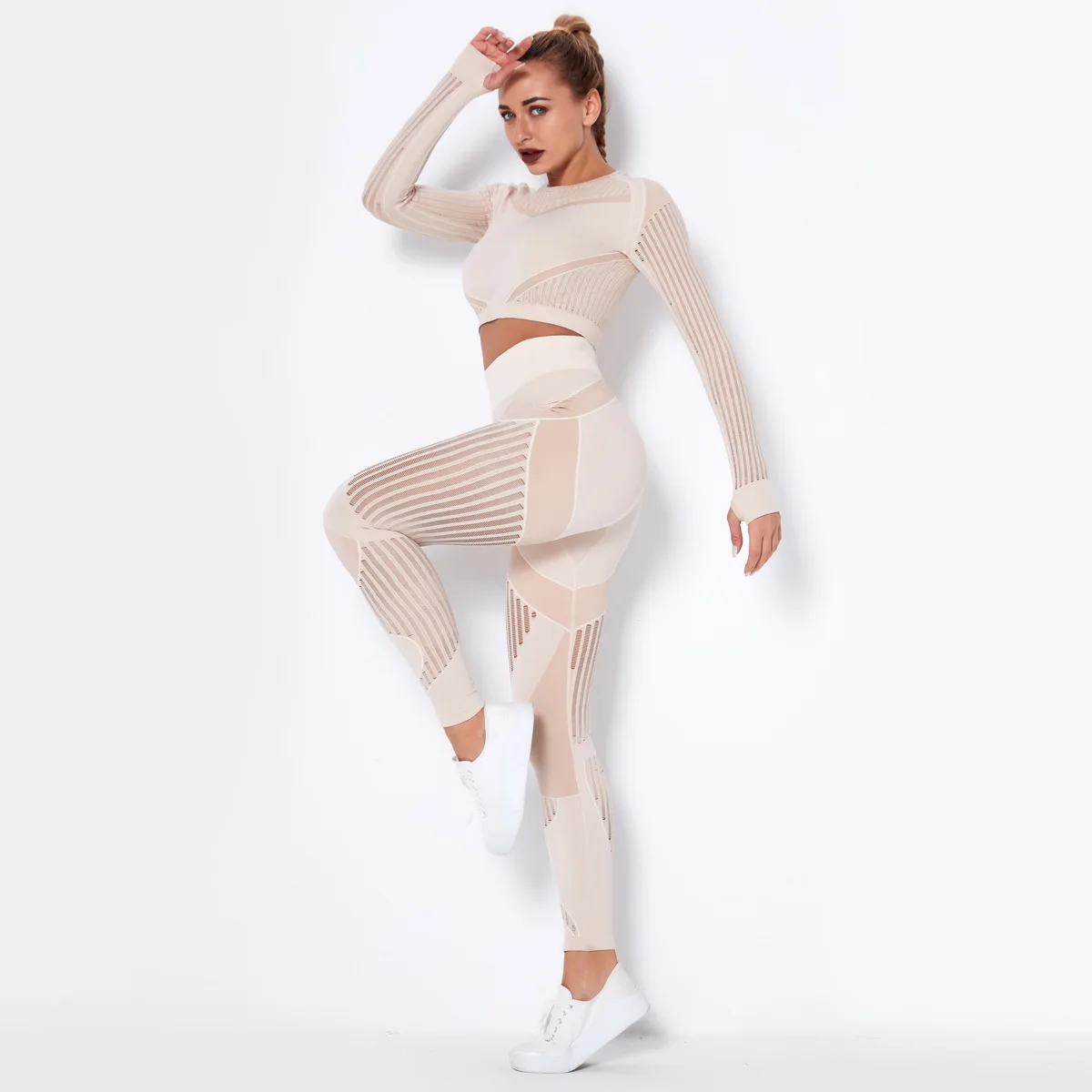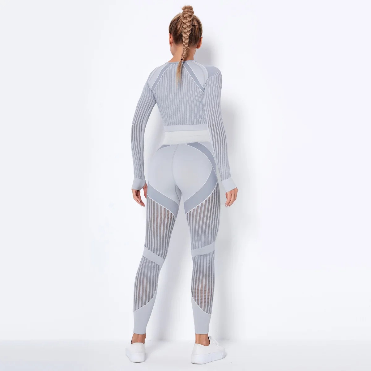 Выдалбливают Бесшовные Йога Спортивный комплект из двух предметов одежды для женщин черного цвета из 2 частей укороченный топ-Бюстгальтер леггинсы для тренировок и занятий в спортзале, одежда для занятий фитнесом, спортивные комплекты