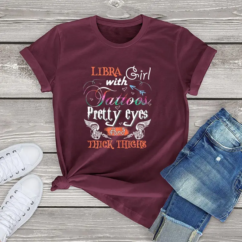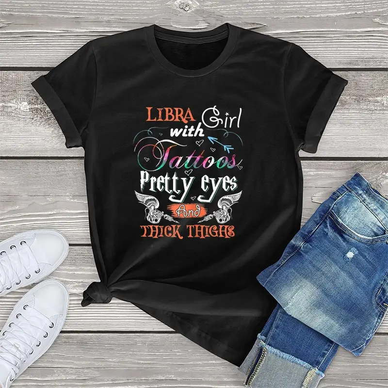 Libra/Женская хлопковая Футболка с татуировками, милыми глазами и толстыми бедрами harajuku, женская рубашка, kawaii, одежда для девочек, футболки, топы 2021, модные футболки, топы большого размера, уличная одежда
