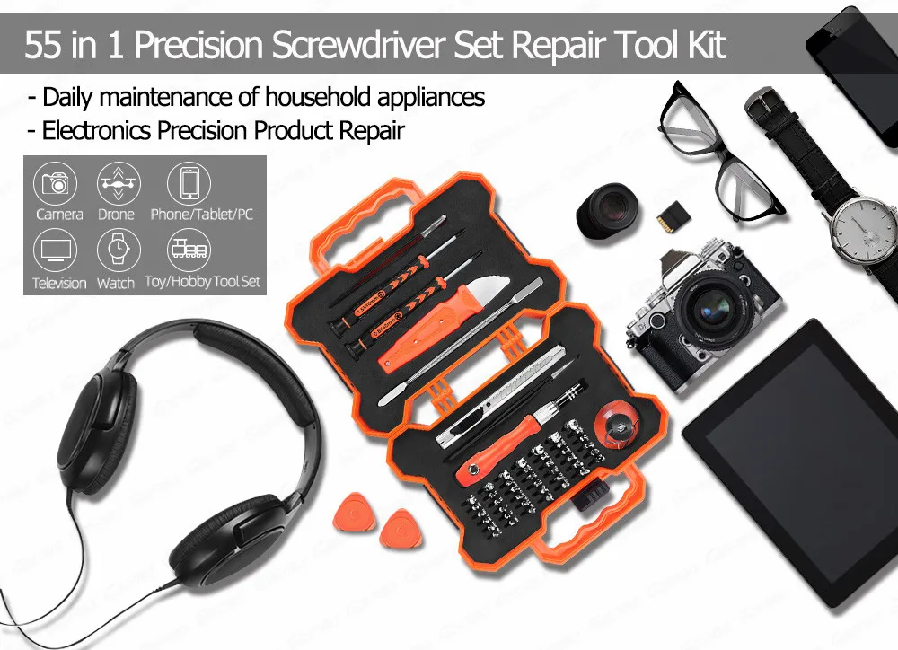 Набор инструментов для ремонта электроники GZERMA, Набор прецизионных отверток с ящиком для инструментов 55 в 1, бытовой набор инструментов для ремонта мобильного телефона сделай сам