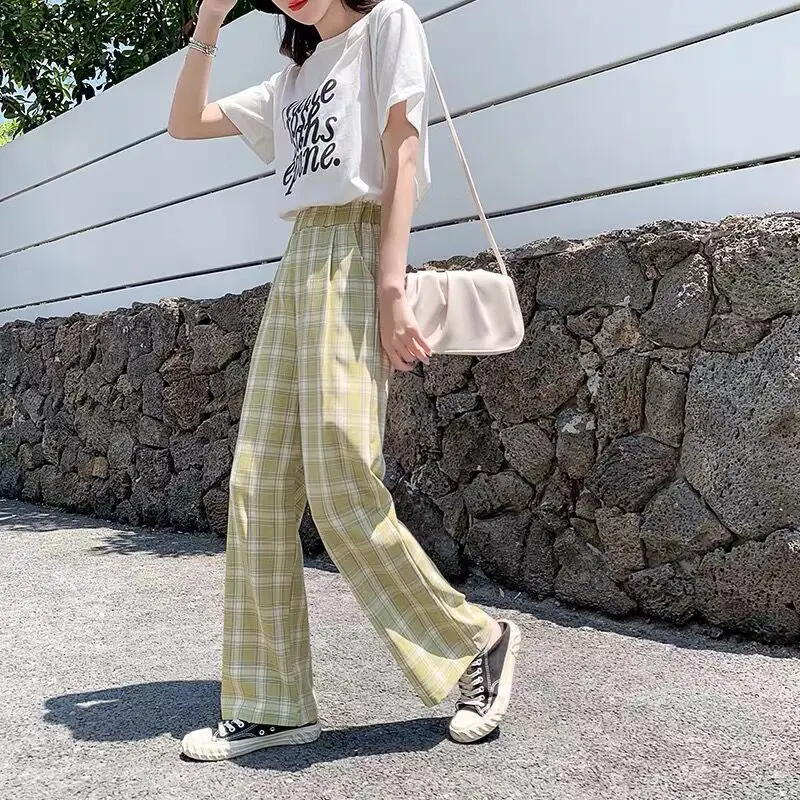 Брюки женские хлопковые в клетку, с широкими штанинами, в Корейском стиле