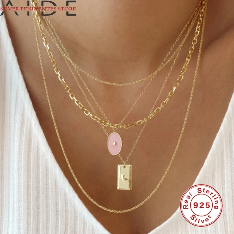 Женское ожерелье с подвеской AIDE S925 из стерлингового серебра, колье с подвеской из розового золота