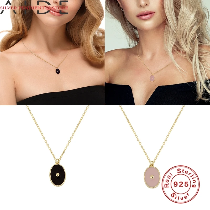 AIDE S925 стерлингового серебра висит черный масло падение ожерелье для женщин, маленький, ожерелье с круглой подвеской розовое золото ожерелье Bijoux Femme (украшения своими руками)